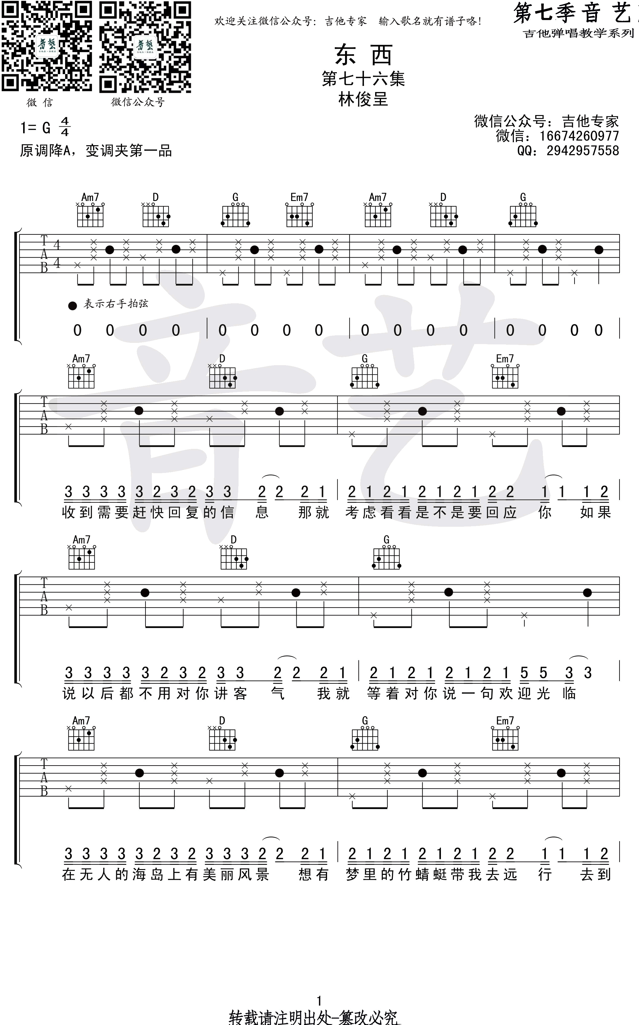 东西吉他谱 - 林俊呈 - G调吉他弹唱谱