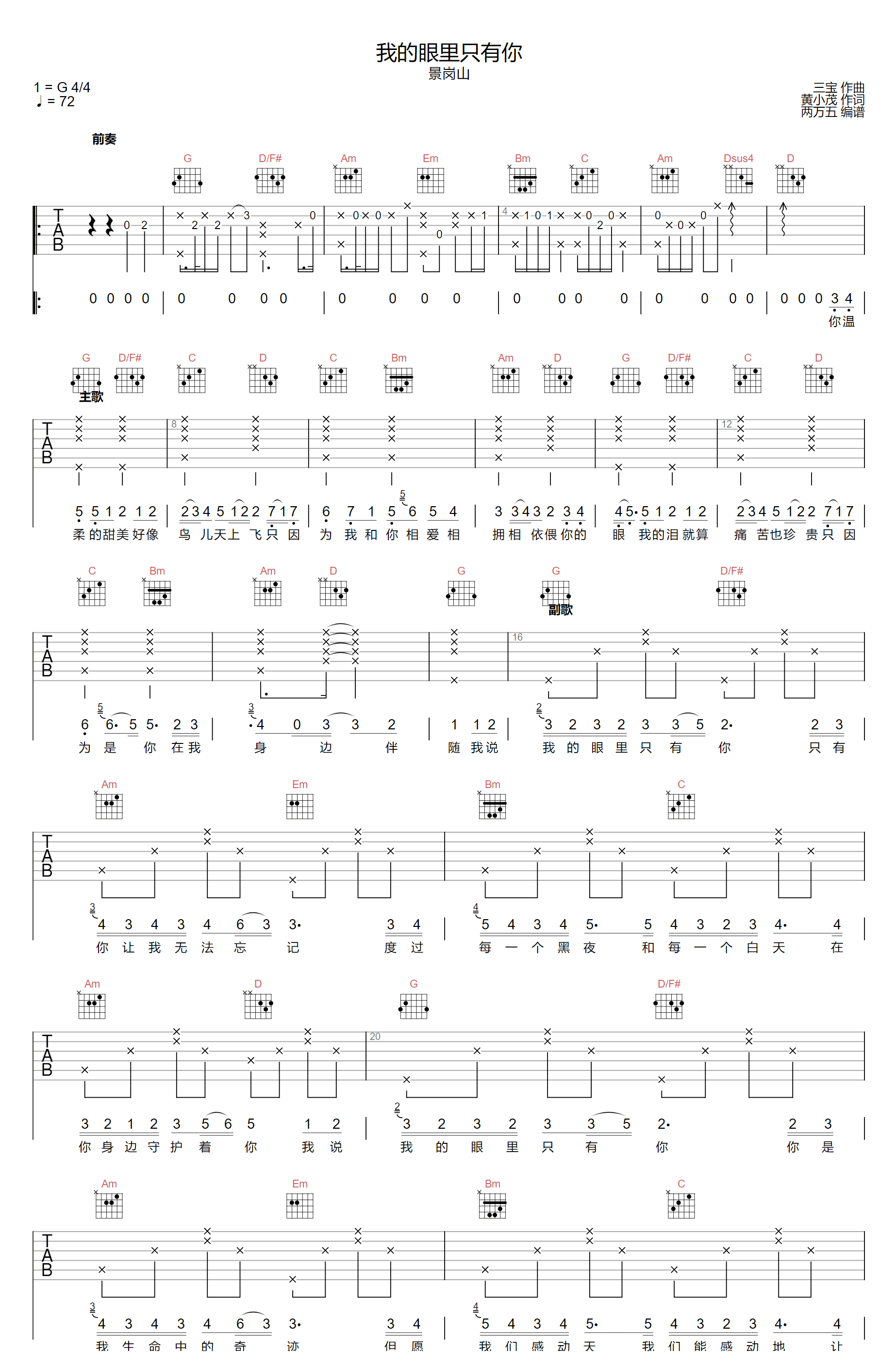 当前位置:琴谱网>吉他弹唱>我的眼里只有你