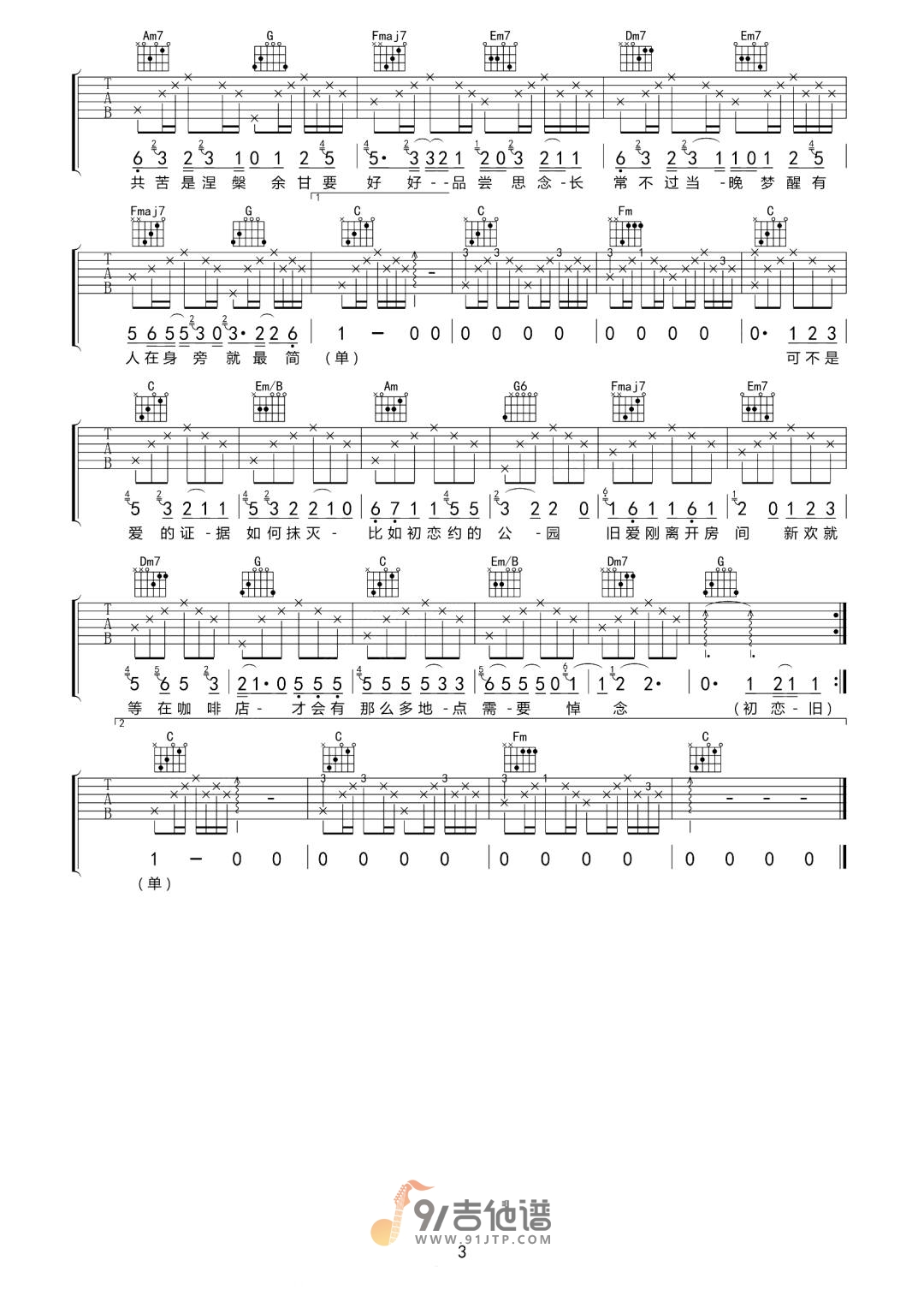 当前位置:琴谱网>吉他弹唱>初恋旧爱新欢