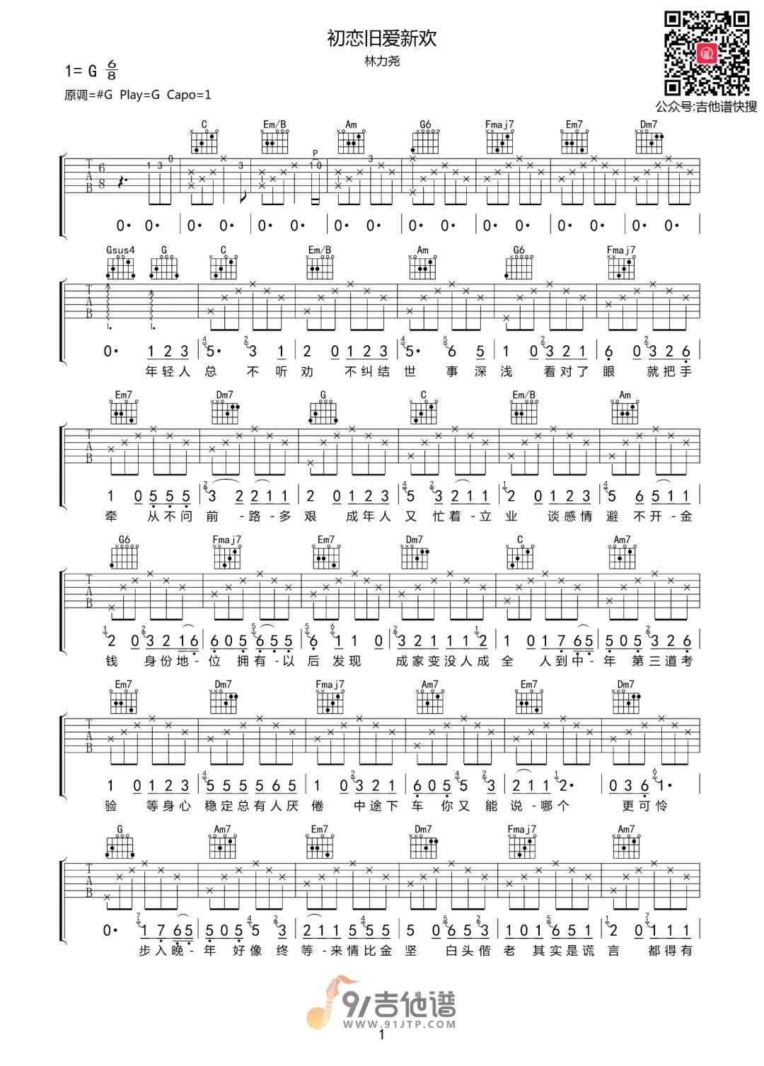 初恋旧爱新欢吉他谱 - 林力尧 - G调吉他弹唱谱 - 原版