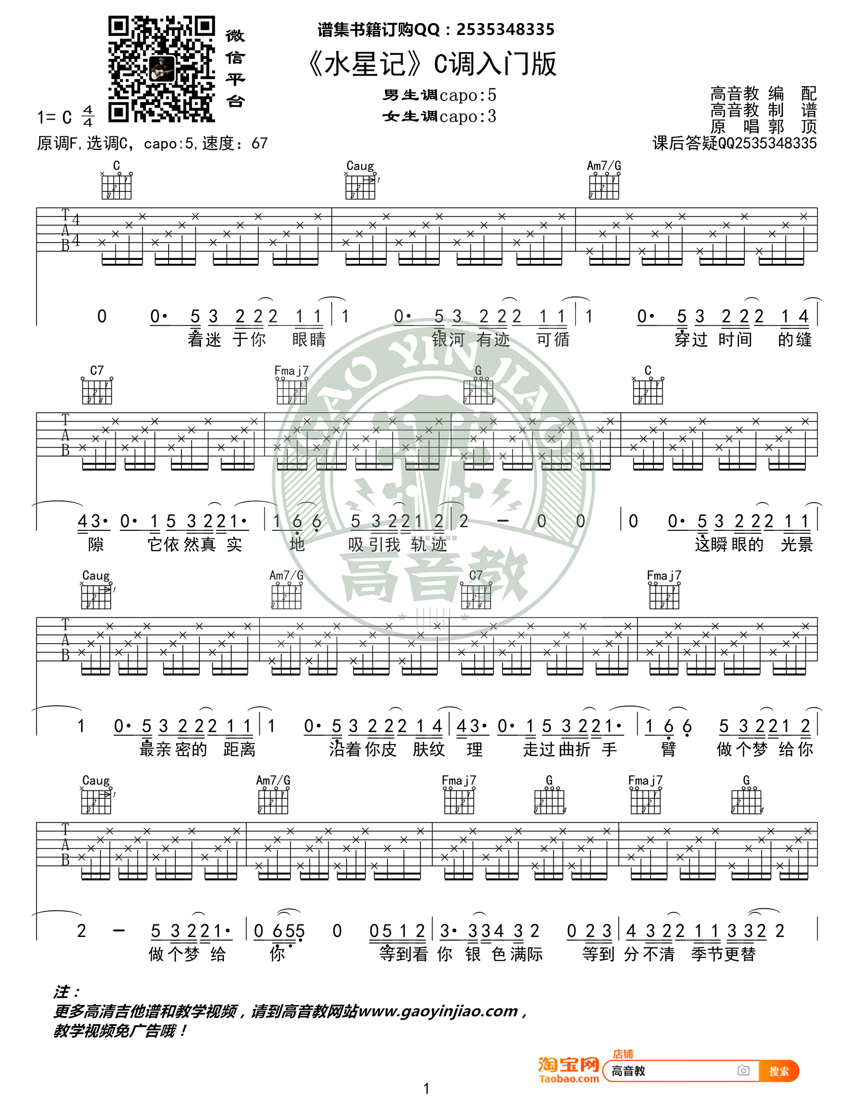 水星记吉他谱 - 郭顶 - C调吉他弹唱谱