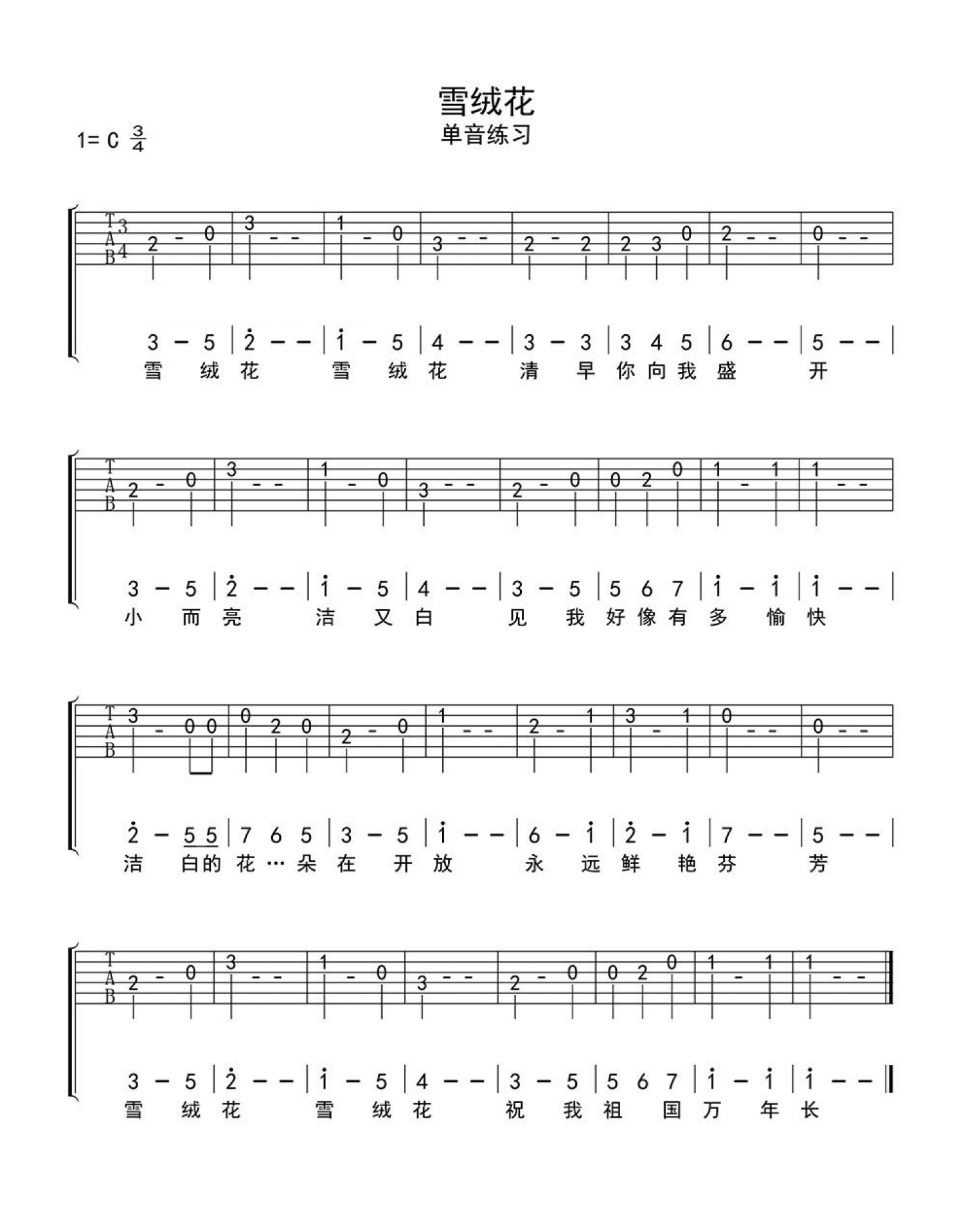 曲谱介绍: 雪绒花吉他谱,单音版练习曲。美国电影《音乐之声》经典插曲,曲调优雅,旋律优美,没有较大的起伏。听之以静心,以养德;唱之以怀念,以祝福。