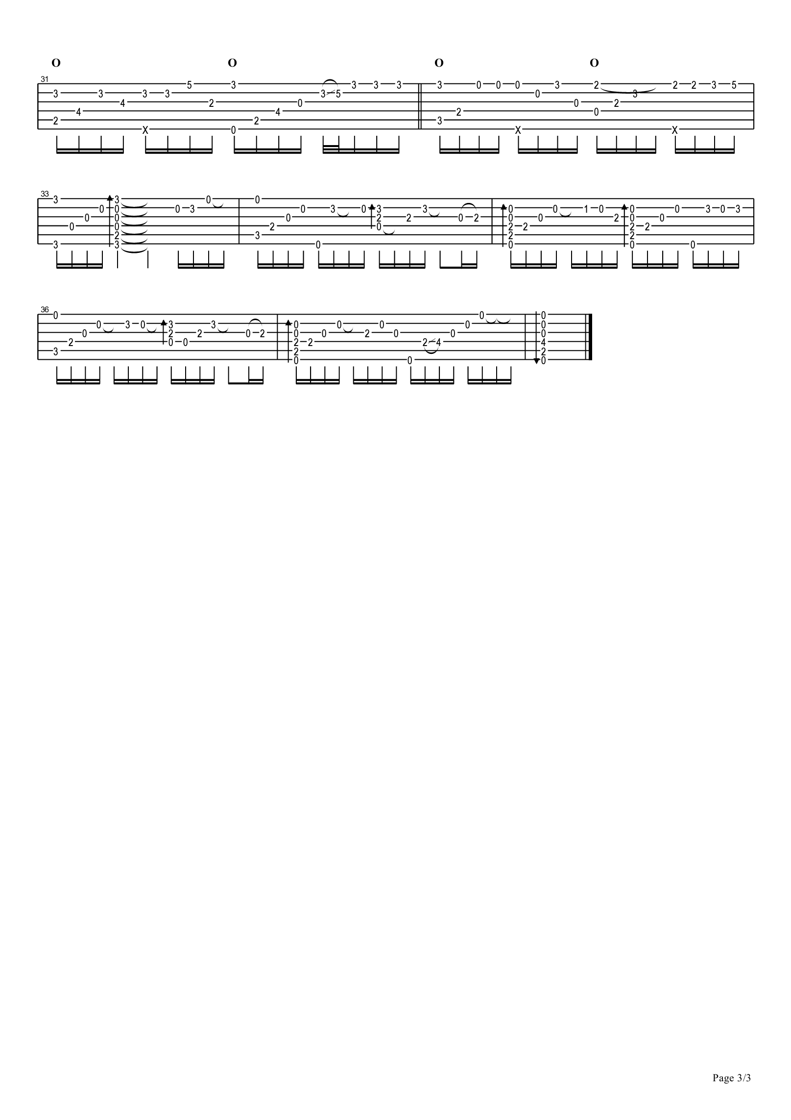 曲谱介绍: 尽头指弹谱,赵方婧演唱的歌曲改编,尽头吉他独奏谱,CAPO夹一品,高清图片谱,曲谱中标注O为股X为拍弦,感谢汉朝明亮的太阳&我怎么那么可爱编配分享,91吉他谱网站上传。 如果尽头是你。我会,拼了命去到达。歌曲唱出人们在迷惘中挣扎着不肯屈服,却毫无结果的无奈,值得体味。