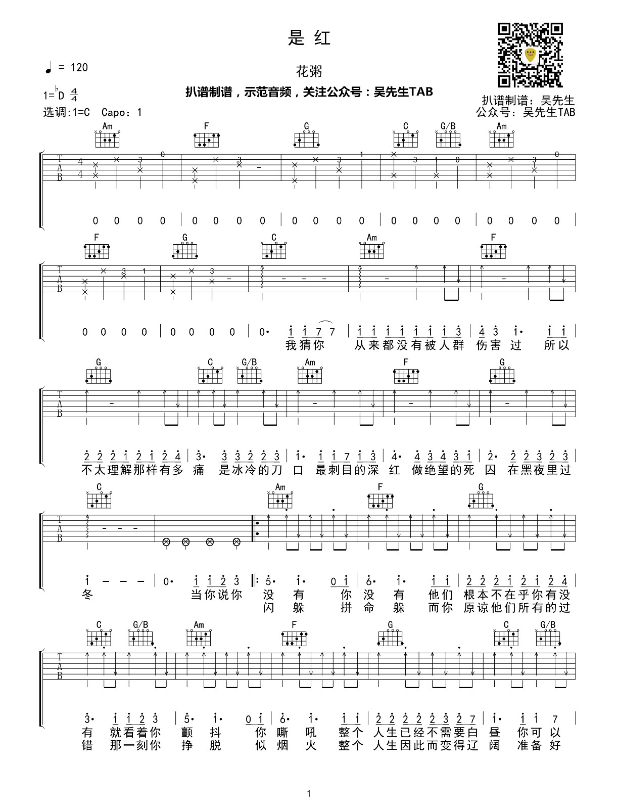 是红吉他谱 - 花粥 - 吉他独奏谱