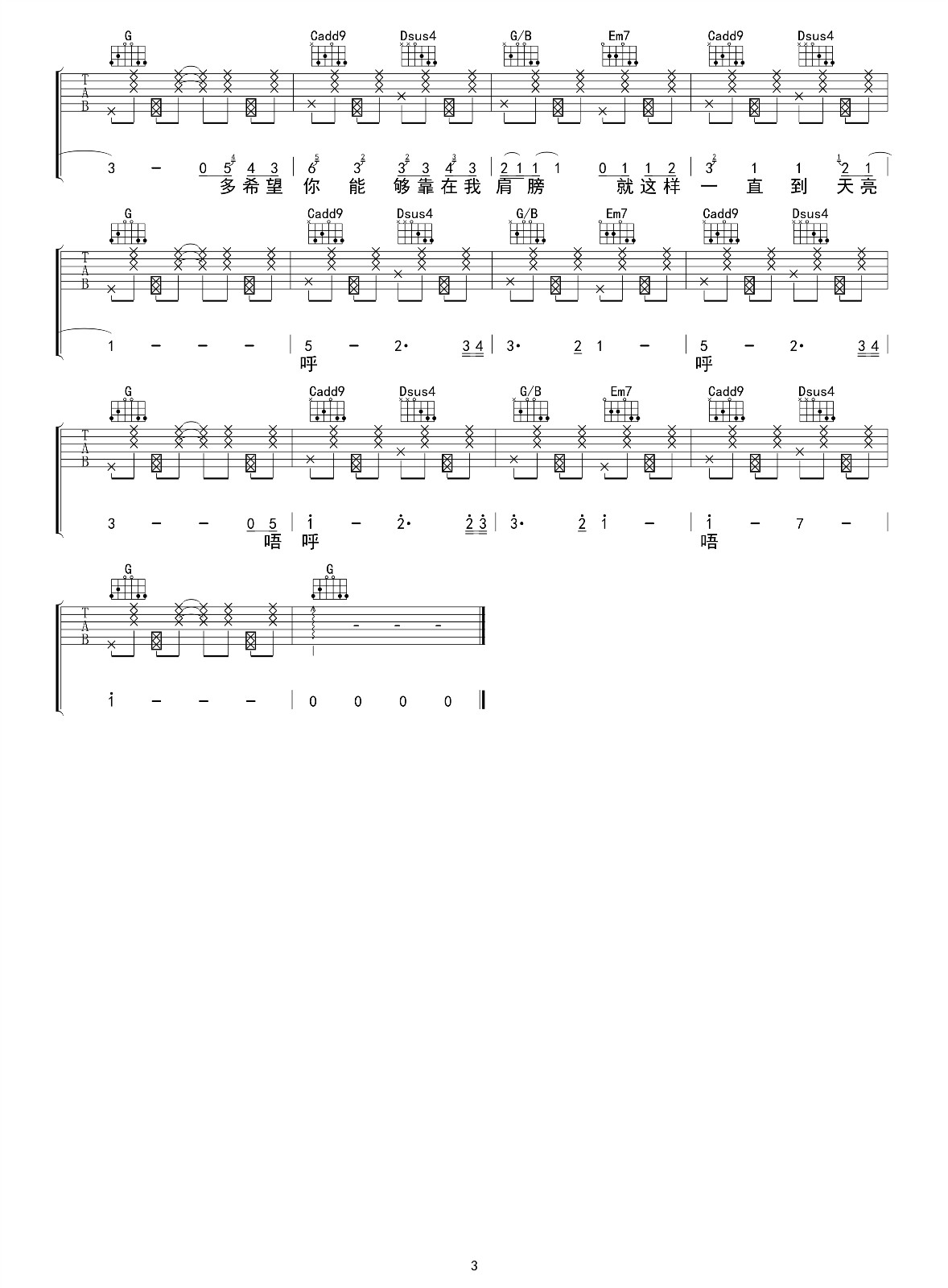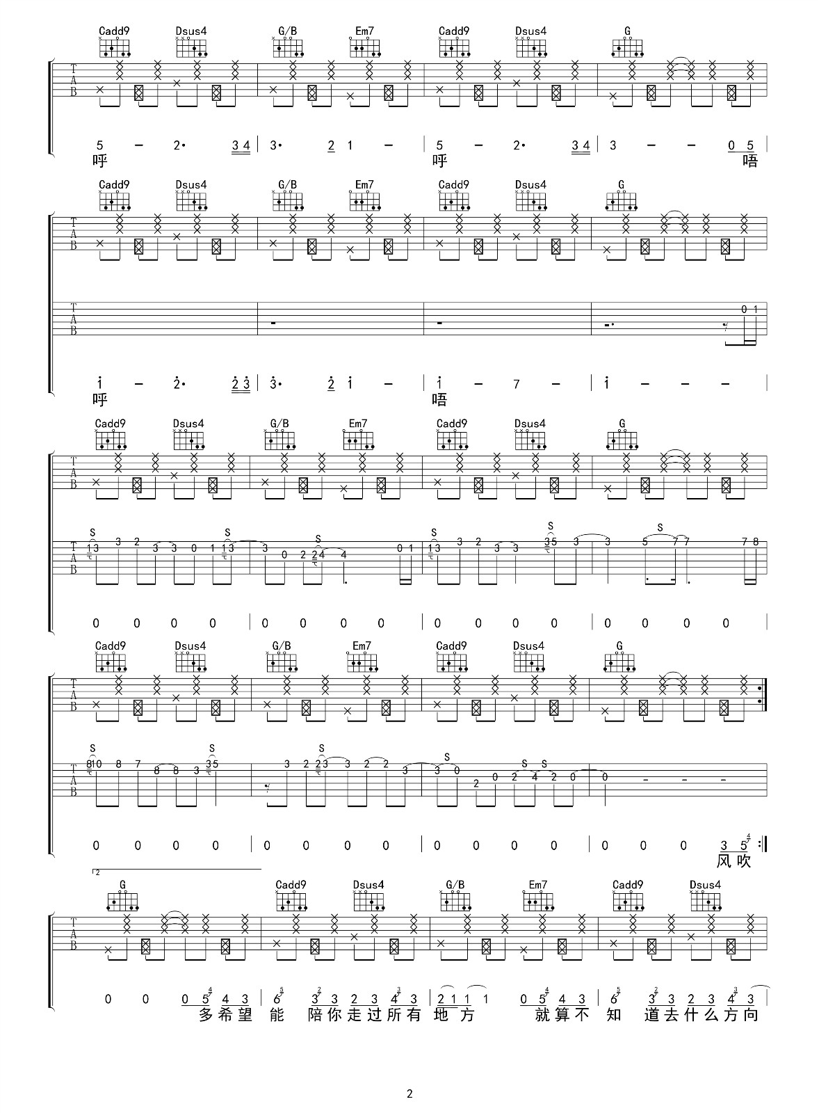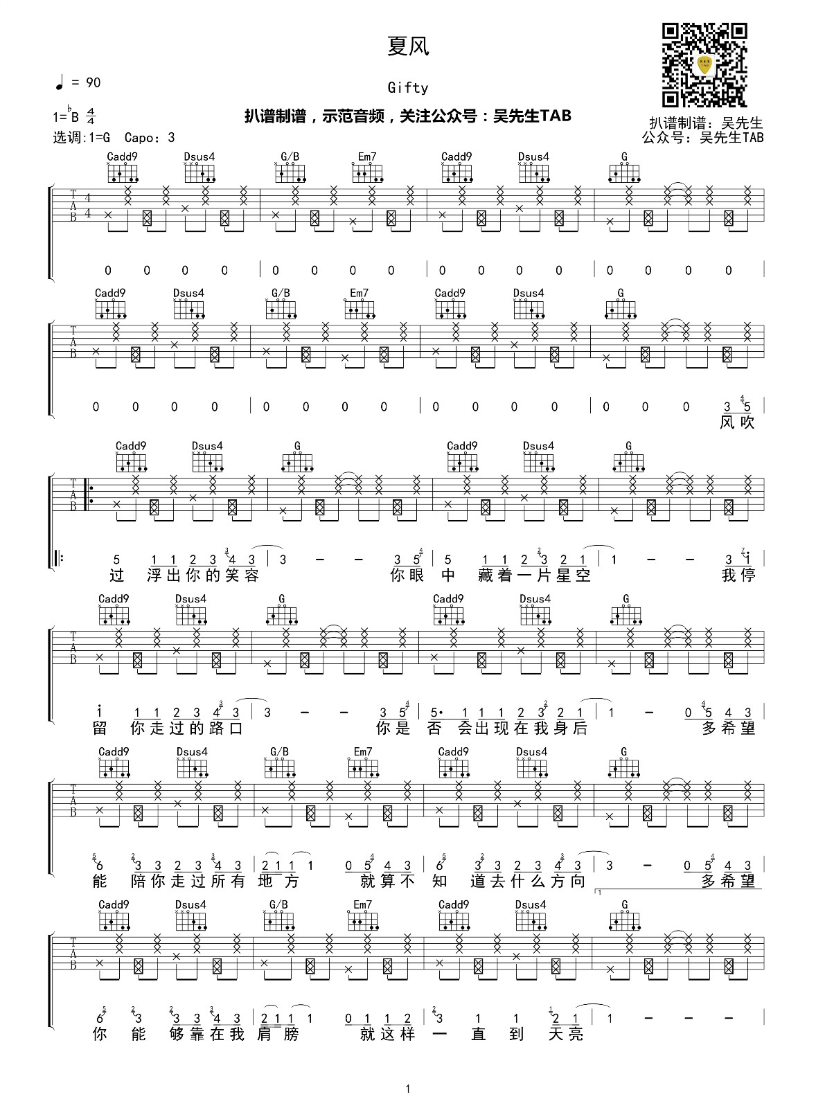 夏风吉他谱 - Gifty - 吉他独奏谱