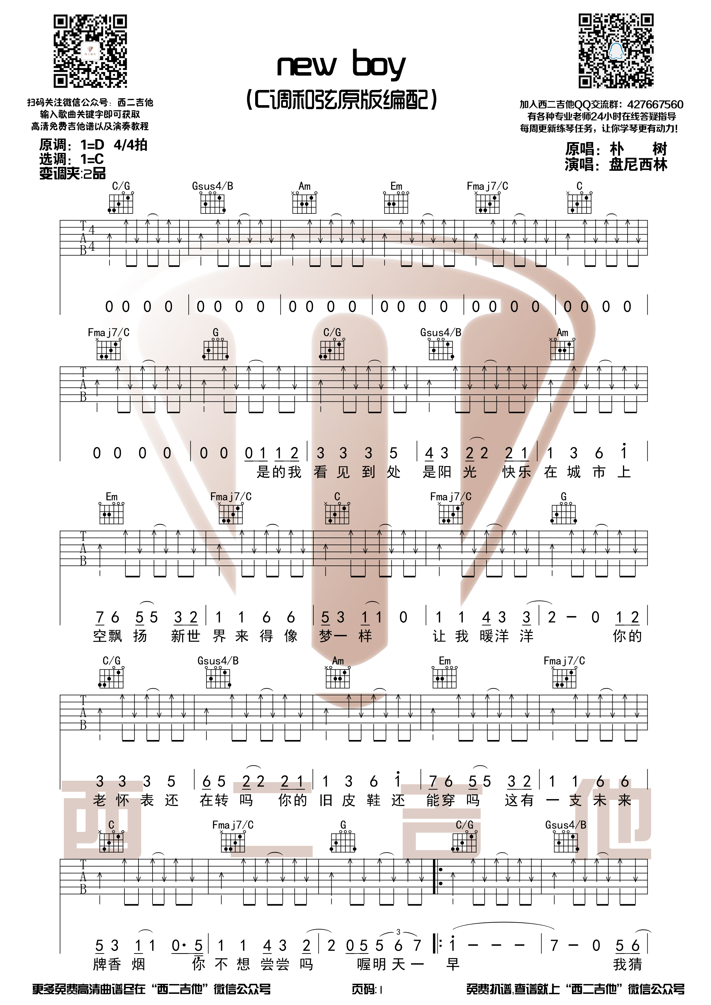当前位置:琴谱网>吉他独奏>New Boy