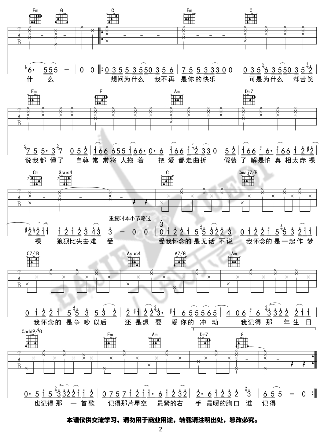 当前位置:琴谱网>吉他弹唱>我怀念的