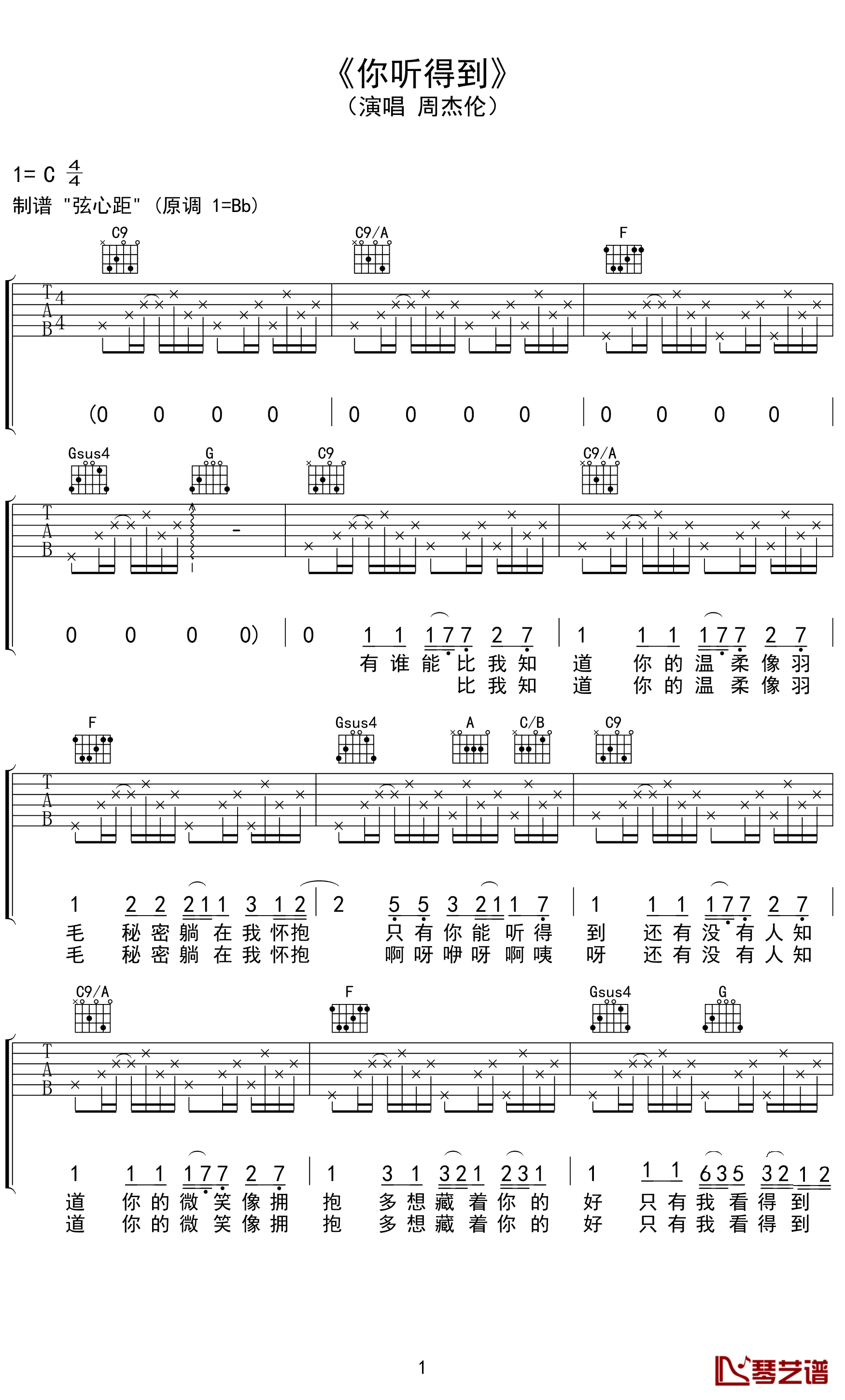 你听得到吉他谱 - 周杰伦 - 吉他独奏谱