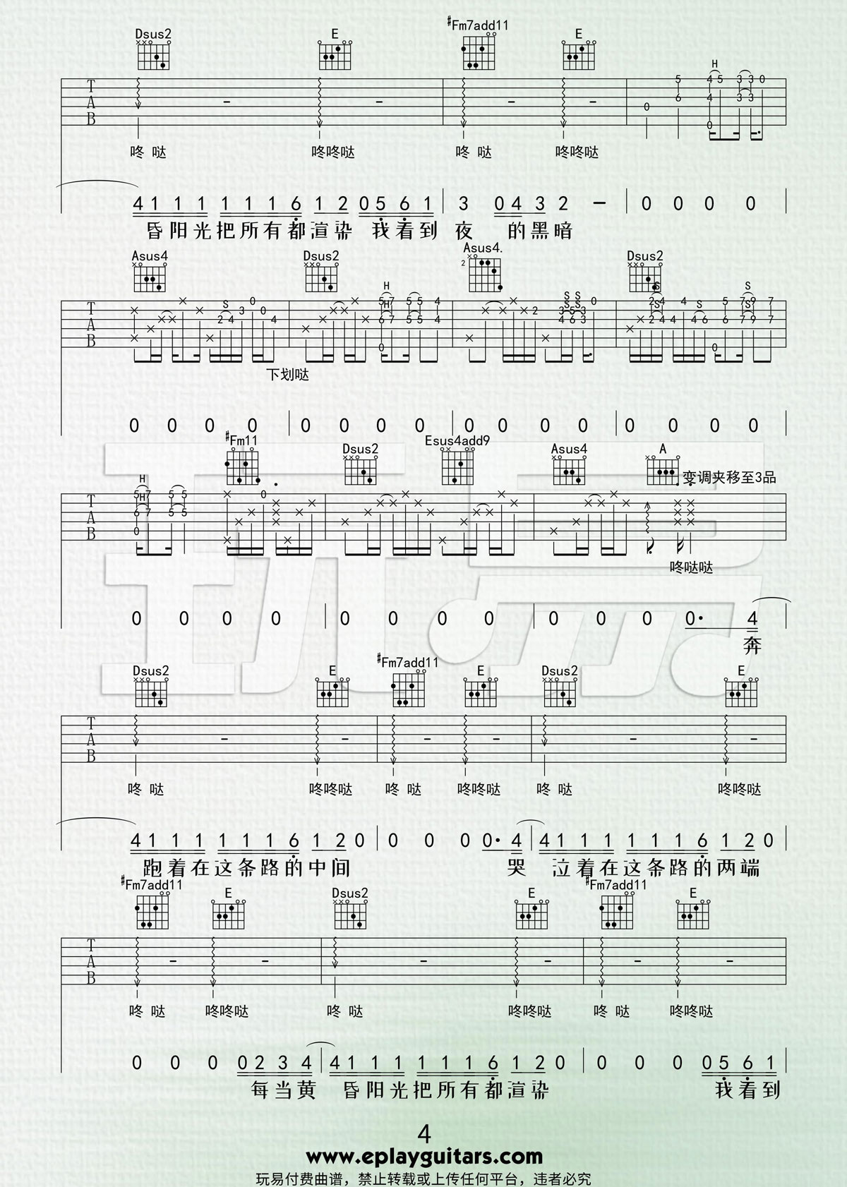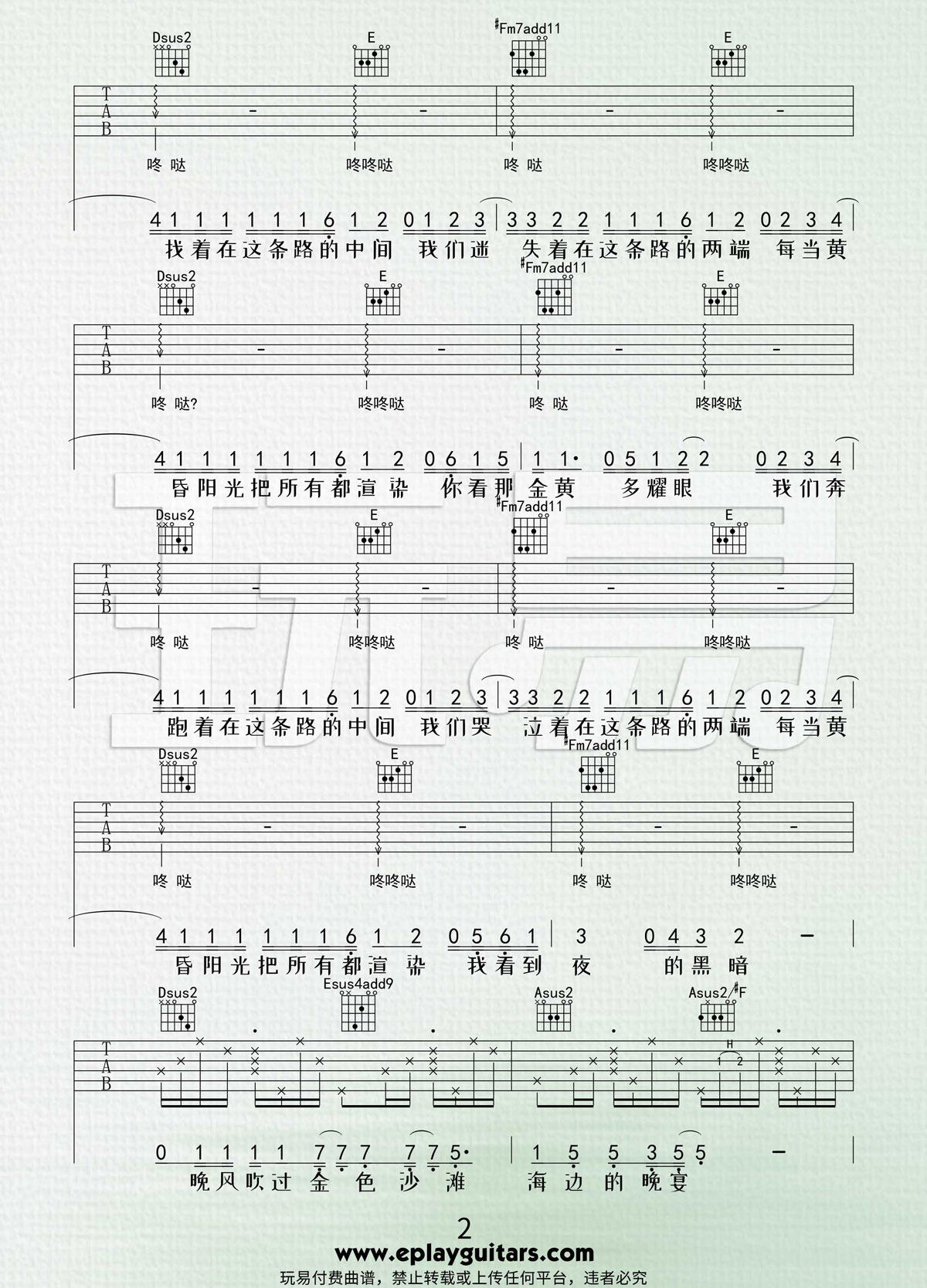 曲谱介绍: 吉他谱介绍:日落大道吉他谱,梁博演唱的一首歌曲,4/4拍的节奏,这首歌曲的原调为B调,这里曲谱采用了A调指法进行编配,演唱时夹变调夹2品可回到原调,也可根据个人实际嗓音情况选择。曲谱由琴谱网更新上传,共5张高清图片弹唱吉他谱例,来源于@玩易吉他编配出品。这首歌的灵感来自于梁博在美国求学时的经历,歌曲旋律温柔而轻松,却有着西部片式的开阔视野,很有画面感的歌,就像是黄昏驾车倘佯在拉斯维加斯的公路上。 日落大道吉他弹唱教学