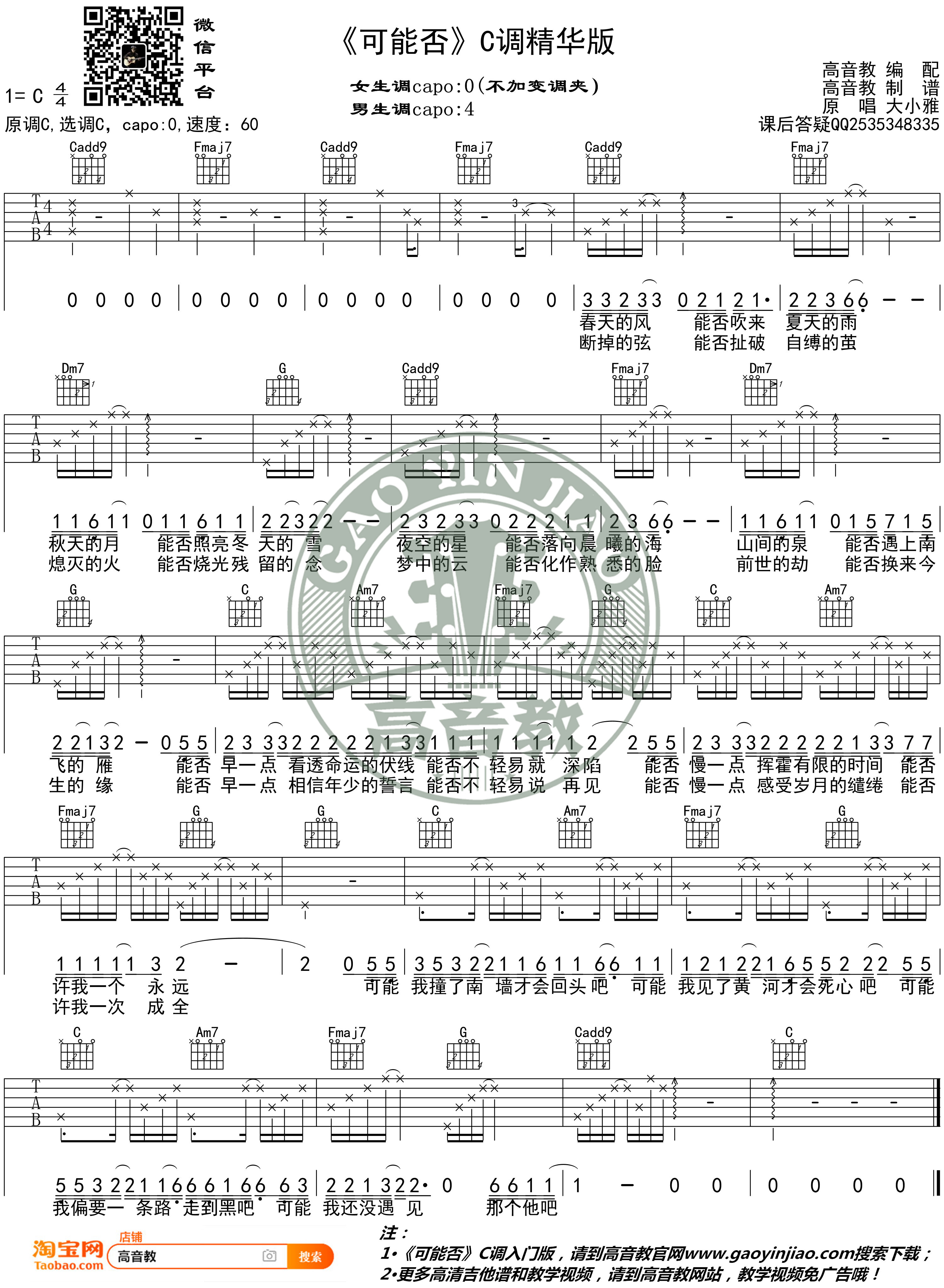 可能否吉他谱 - 木小雅 - C调吉他独奏谱