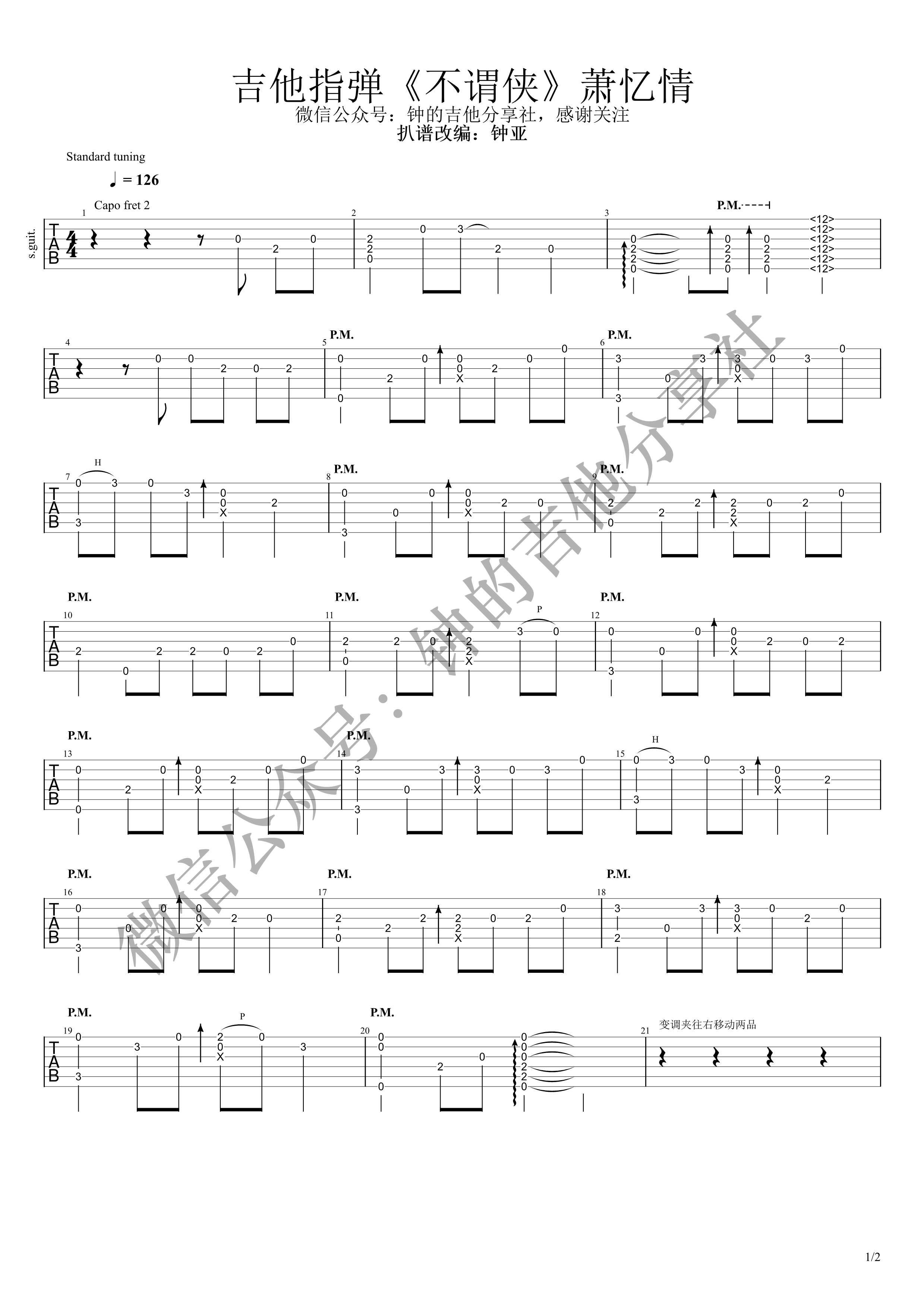 当前位置:琴谱网>吉他独奏>不谓侠