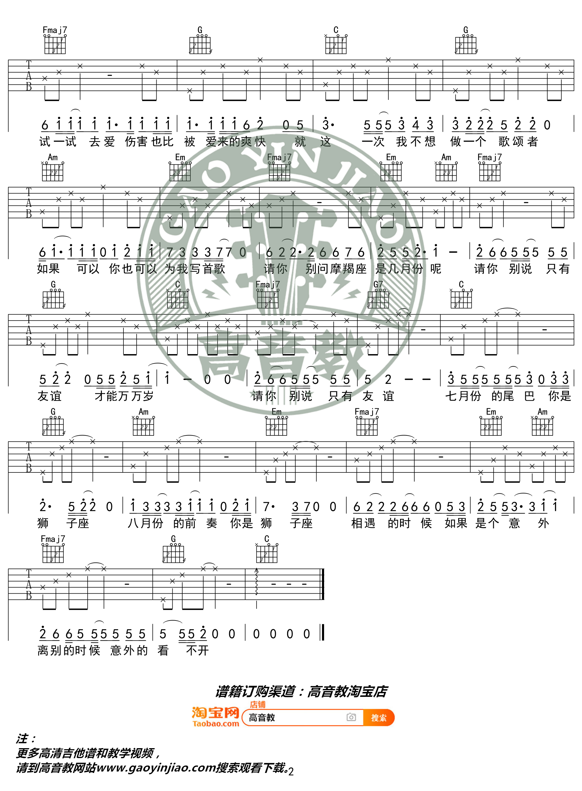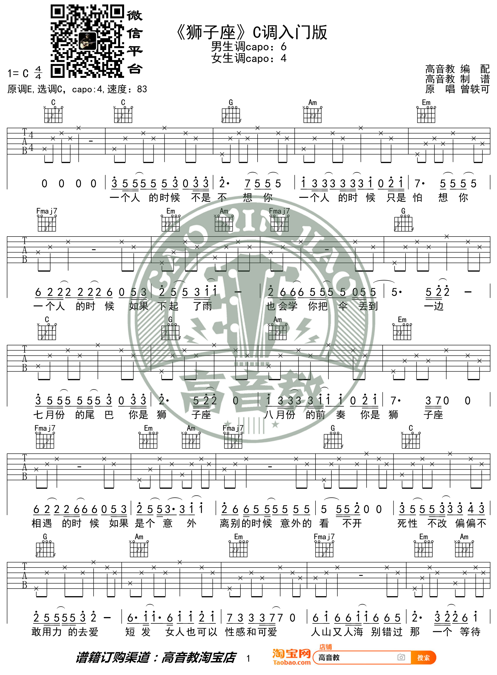 狮子座吉他谱 - 曾轶可 - C调吉他独奏谱