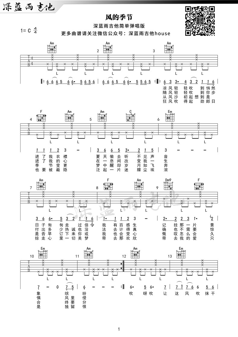 当前位置:琴谱网>吉他独奏>风的季节