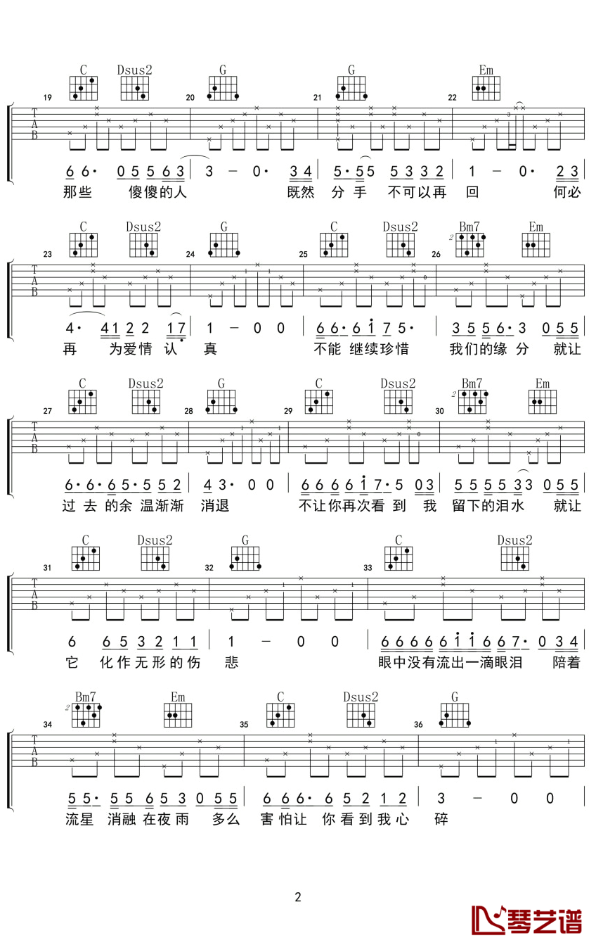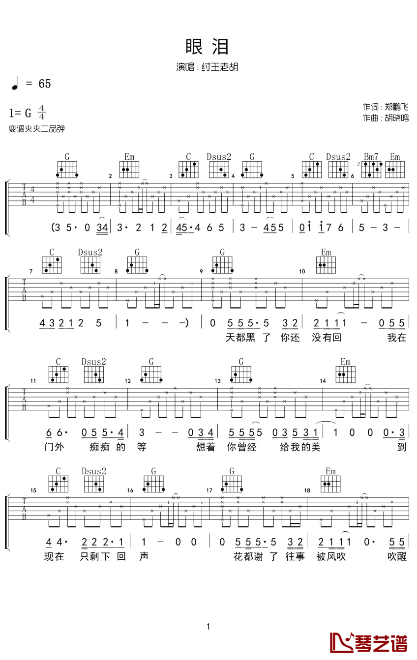 眼泪吉他谱 - 纣王老胡 - 吉他独奏谱