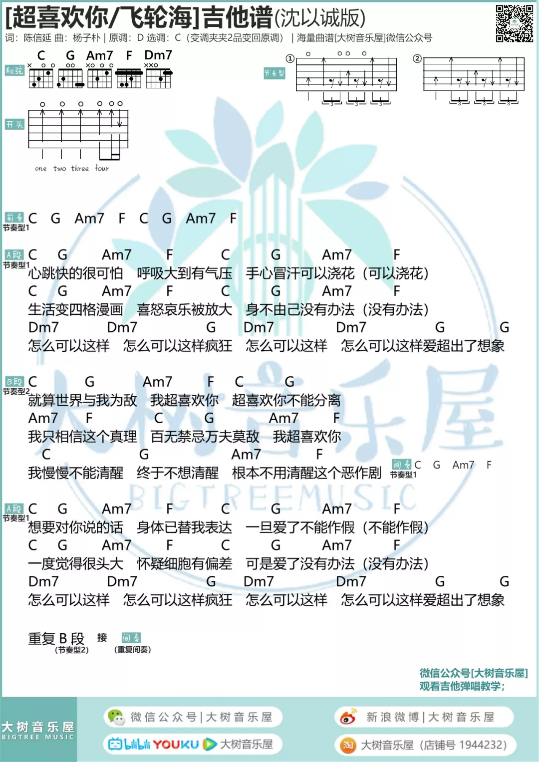 超喜欢你吉他谱 - 飞轮海/沈以诚 - 吉他弹唱谱