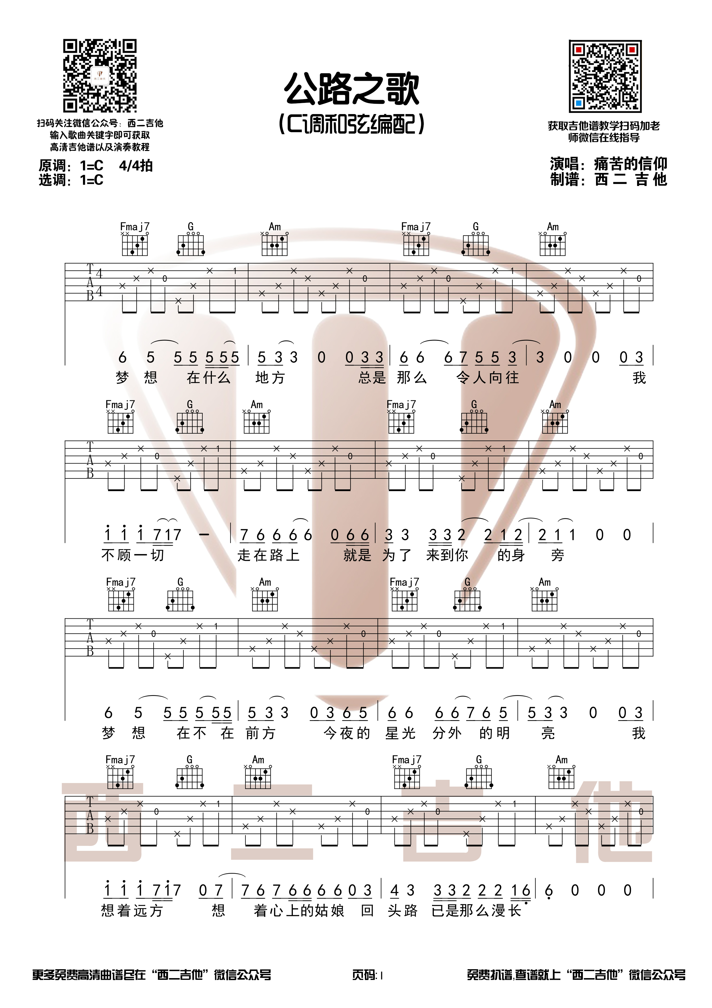 公路之歌吉他谱 - 痛苦的信仰 - 吉他弹唱谱