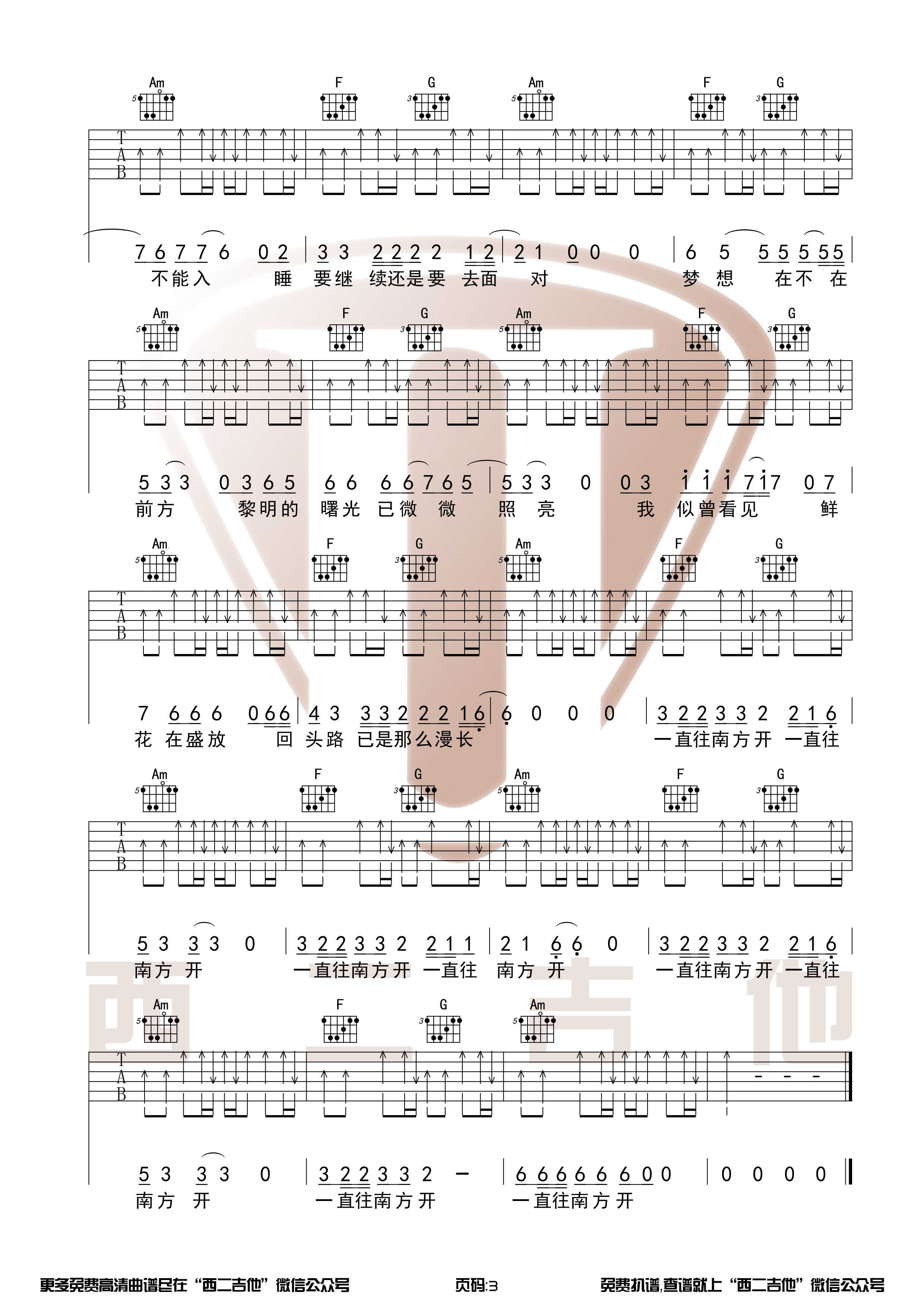 曲谱介绍: 《公路之歌》是痛苦的信仰乐队的一首知名歌曲,在奋斗的道路上一直在拜读。一样的积极,多了些温暖。看起来,想必是痛仰在游历云南、西藏、尼泊尔乃至新藏铁路之后真实的心底写照。摇滚的精髓在于真实,没有真正经历过怎会给听者如此真实的感应。“梦想在什么地方?总是那么令人向往。”这是所有所谓“摇滚青年”“文艺青年”“文学青年”“新青年”的共同心声。
