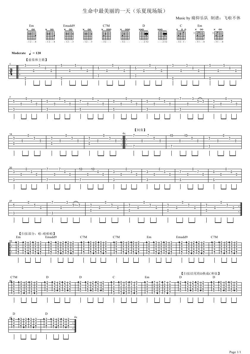 生命中最美丽的一天吉他谱 - 痛苦的信仰 - 吉他弹唱谱