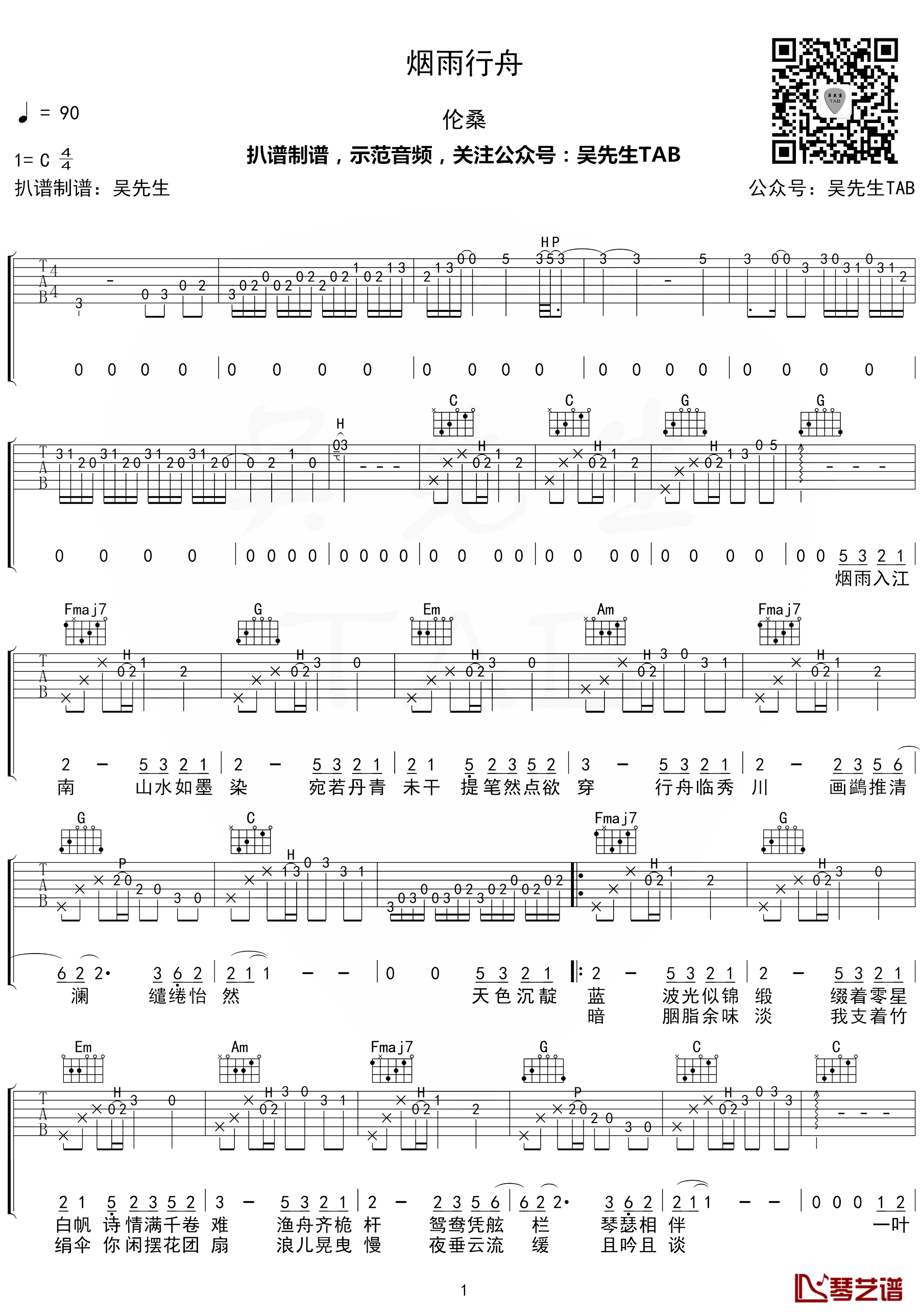 当前位置:琴谱网>吉他弹唱>烟雨行舟