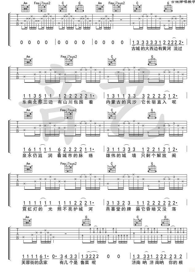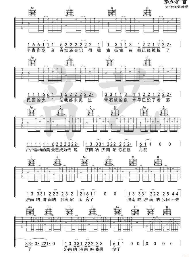 曲谱介绍:   《济南济南》是由陈小熊作词、作曲并演唱的歌曲,收录在EP《之外》中。   歌曲歌词   我抬眼是千佛山的轮廓   我闭眼是大明湖和护城河   趵突泉在我耳畔喷涌着   可我却不清楚   济南