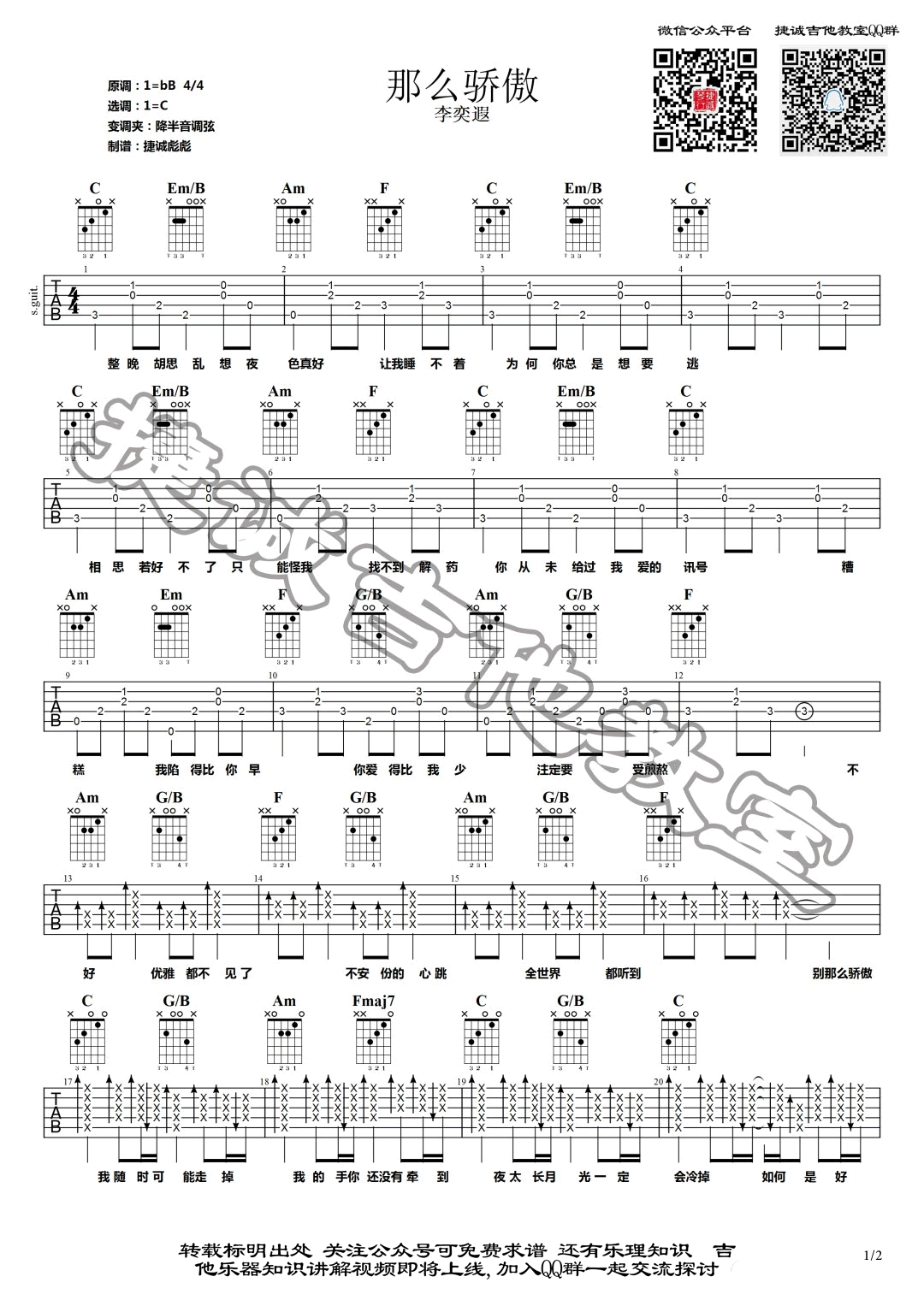 曲谱介绍: 那么骄傲吉他谱,李奕遐翻唱版本,金海心原唱的一首经典代表歌曲,那么骄傲六线谱,原调bB,选调C,降半音调弦,两张图片谱。捷诚吉他教室编配出品,琴谱网网整理分享。 多年前红极一时的内地爱情剧《都是天使惹的祸》里的歌,这么多年了还是深受大众喜爱。金海心极具特色的嗓音,稍微带点鼻音又有点慵懒,就像微风拂过风铃,天籁般动听。只要一开嗓,仿佛就能把耳朵叫醒。