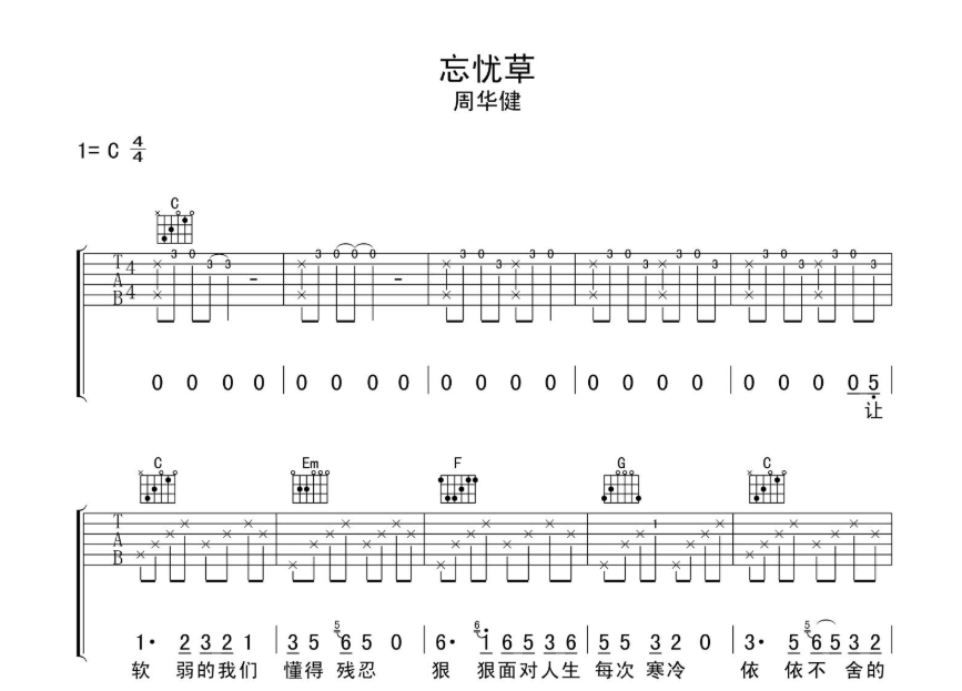 忘忧草吉他谱 - 周华健 - 吉他弹唱谱