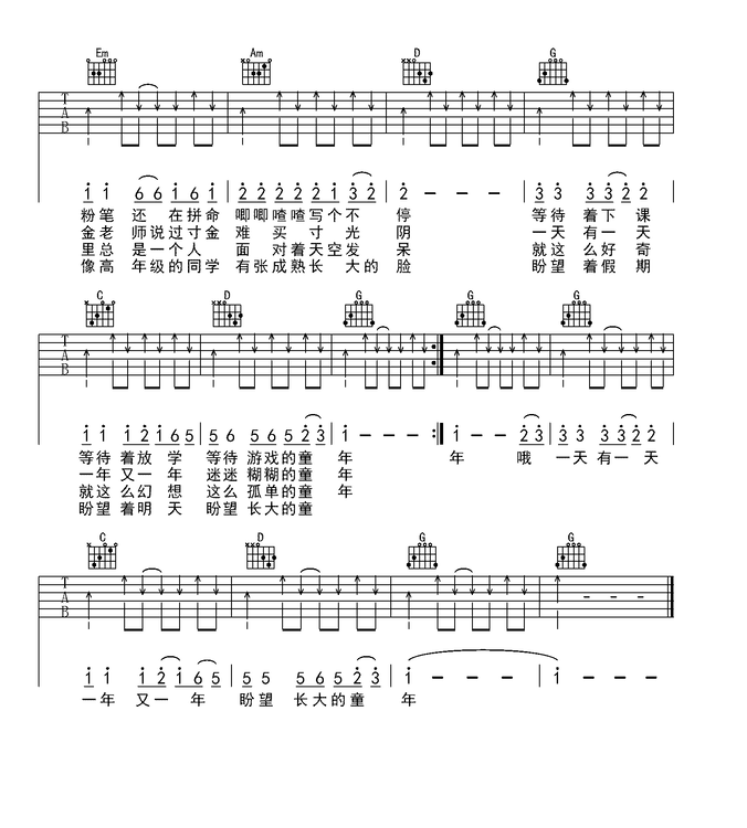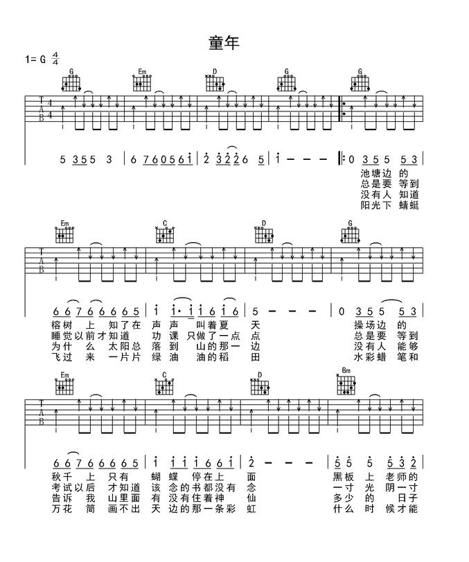 童年吉他谱 - 吉他弹唱谱