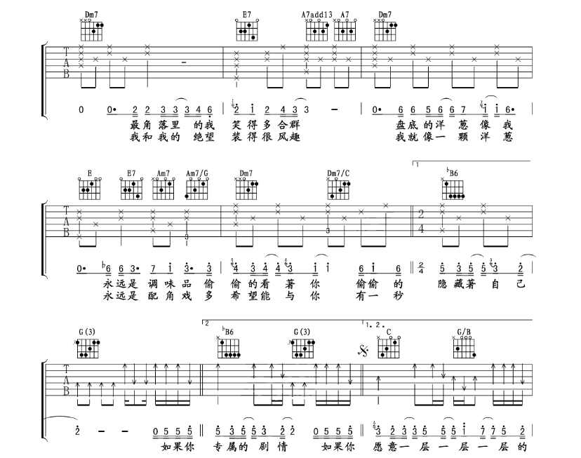 洋葱吉他谱 - 杨宗纬 - 吉他弹唱谱