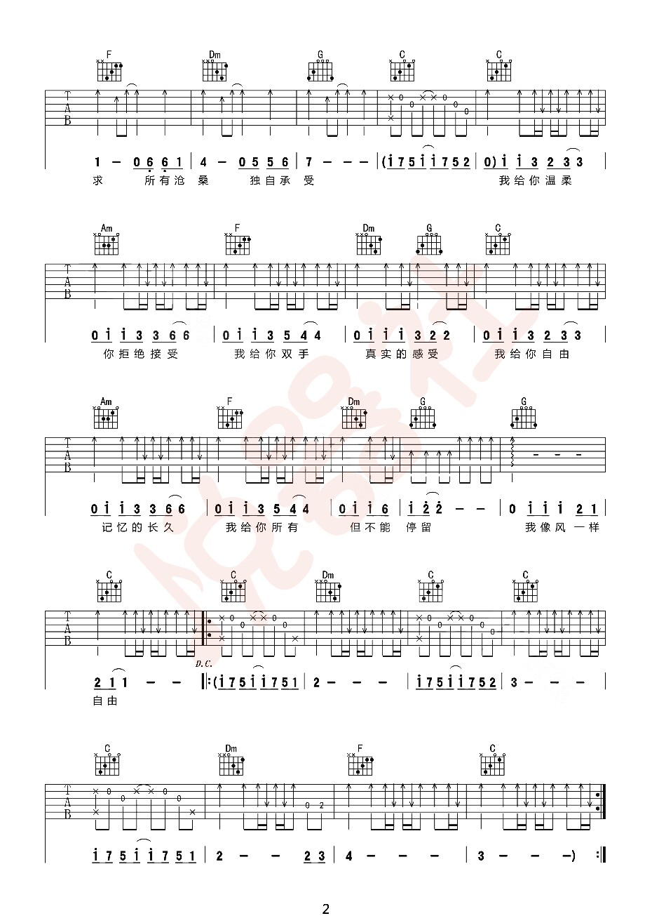 像风一样自由吉他谱 - 吉他弹唱谱