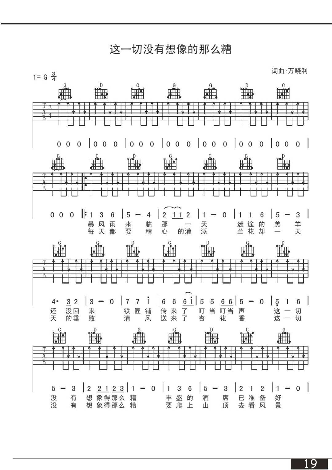 这一切没有想象的那么糟吉他谱 - 万晓利 - G调吉他弹唱谱