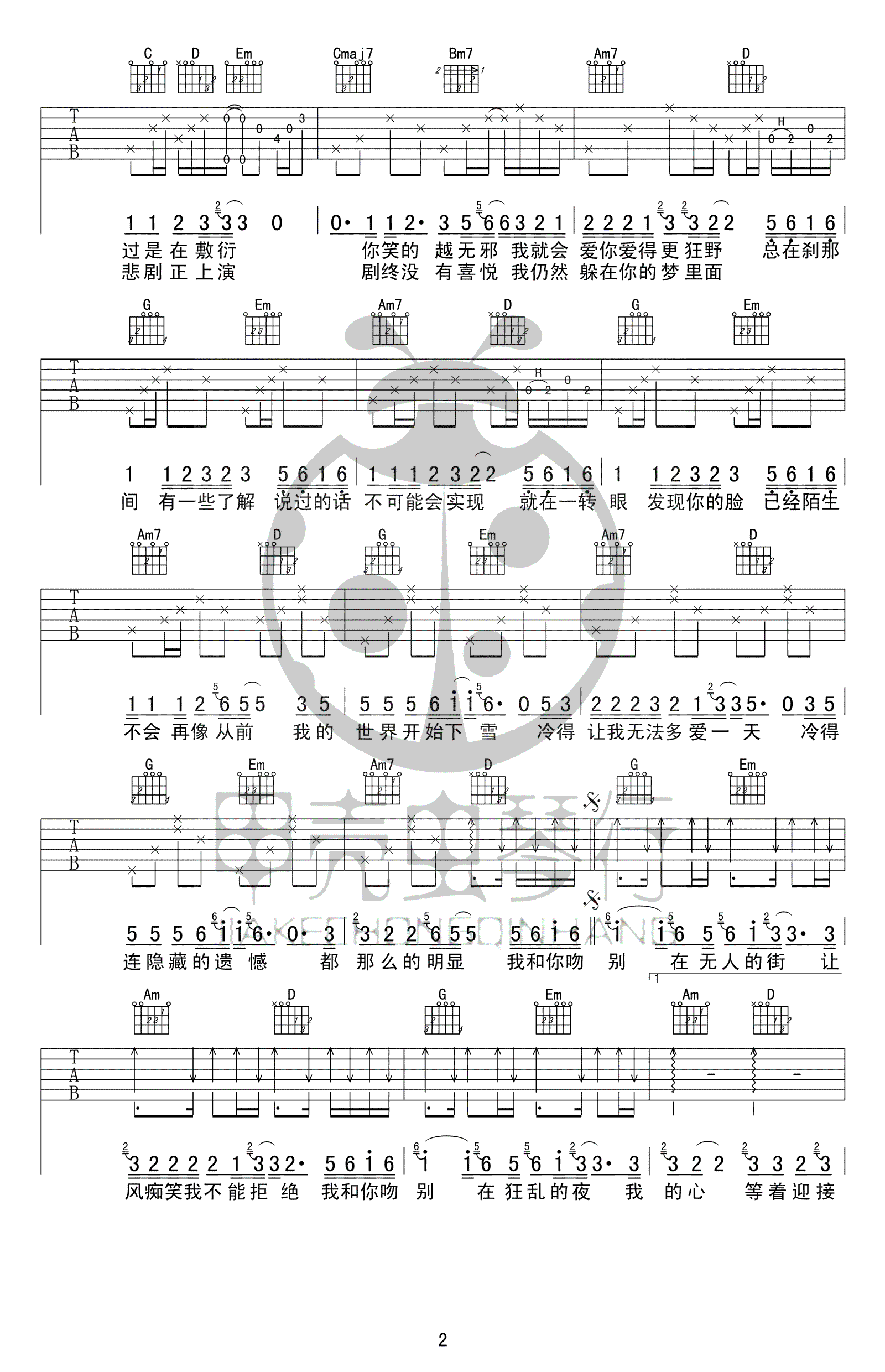 当前位置:琴谱网>吉他弹唱>吻别