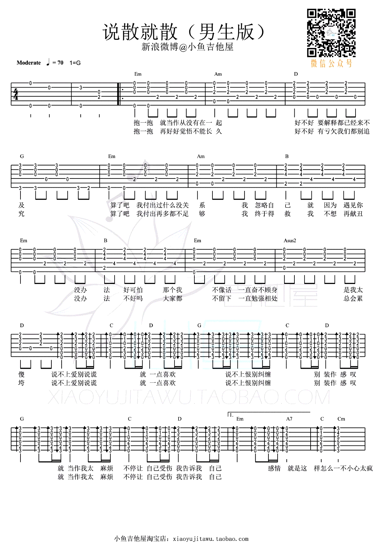当前位置:琴谱网>吉他弹唱>说散就散