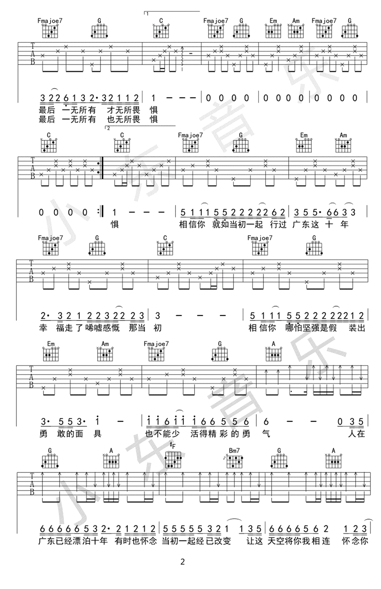 广东十年爱情故事吉他谱 - 广东雨神 - C调吉他弹唱谱