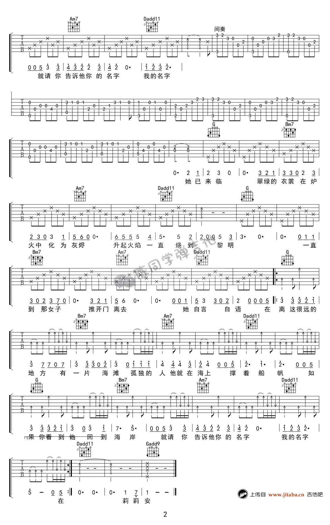 当前位置:琴谱网>吉他弹唱>莉莉安