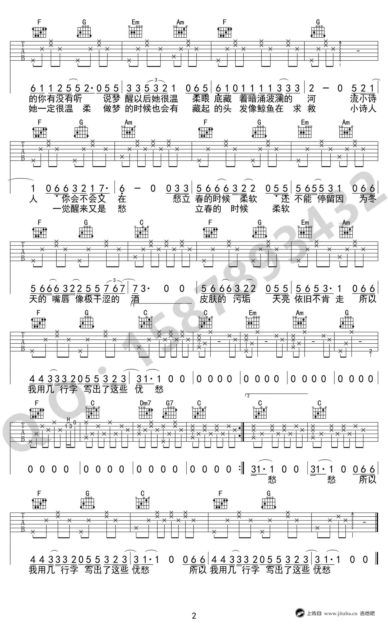 当前位置:琴谱网>吉他弹唱>小诗人