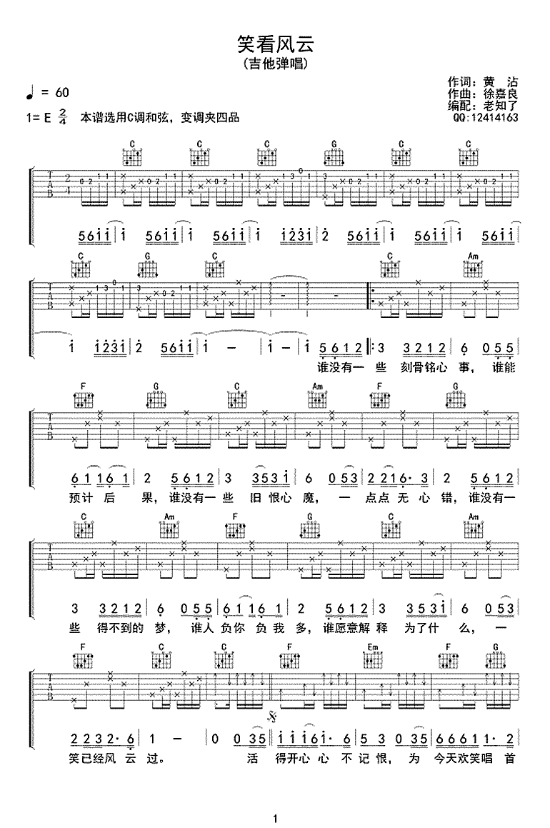 当前位置:琴谱网>吉他弹唱>笑看风云