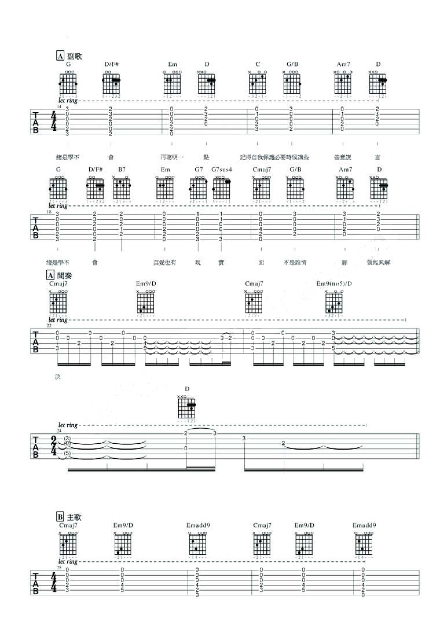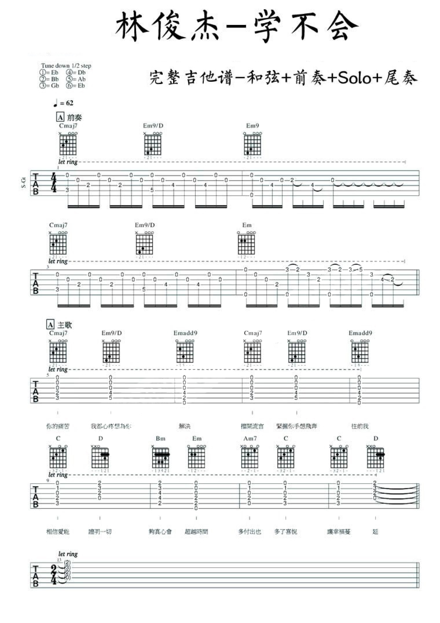 学不会吉他谱 - 林俊杰 - 吉他弹唱谱 - 完整版
