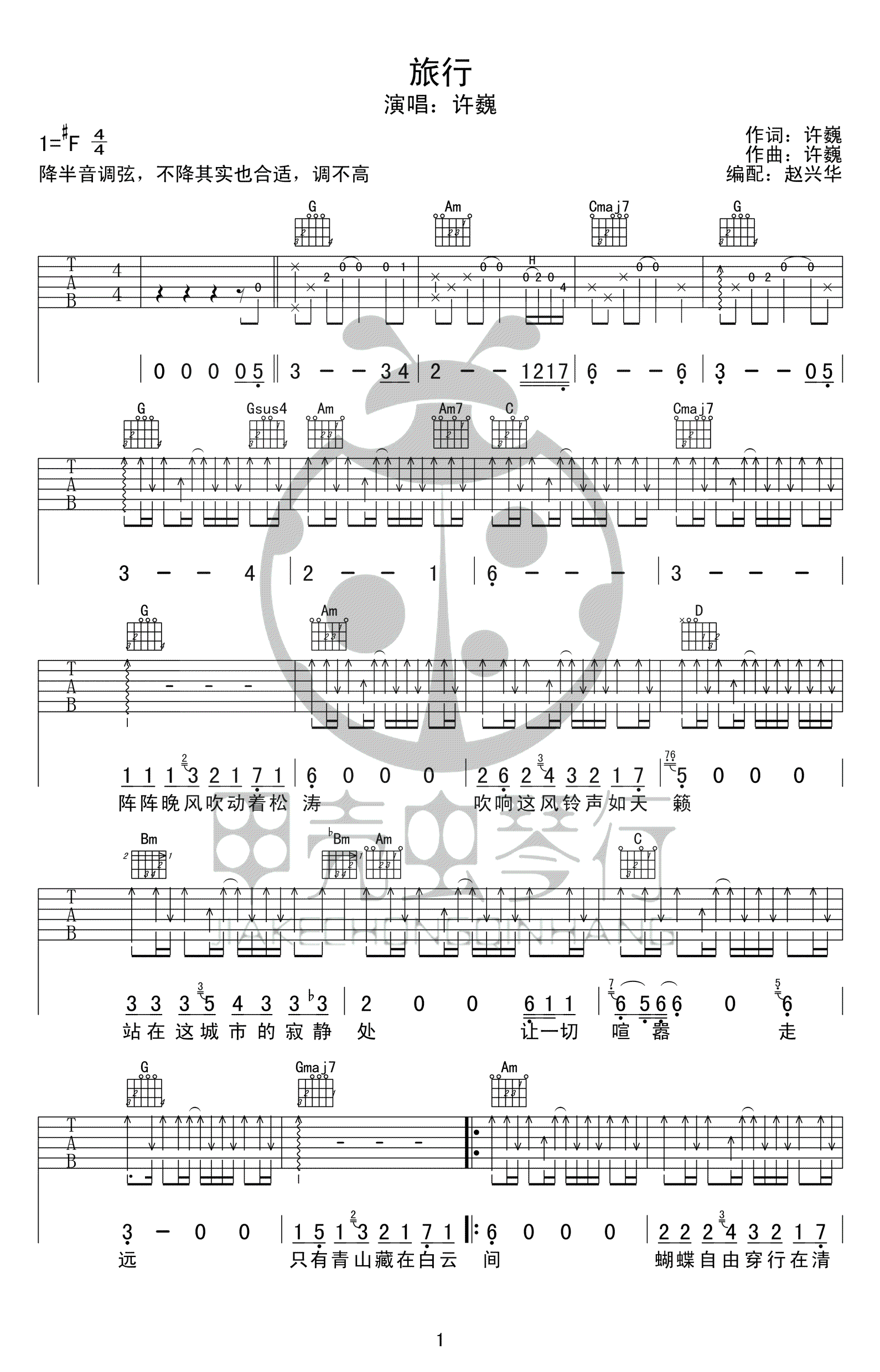 旅行吉他谱 - 许巍 - 吉他弹唱谱 - 原版