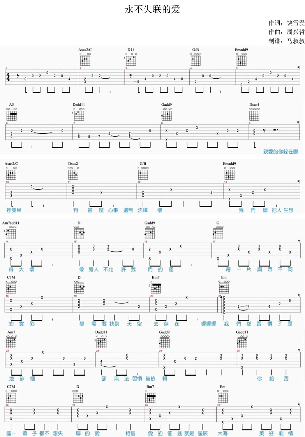 永不失联的爱吉他谱 - 周兴哲 - 吉他弹唱谱