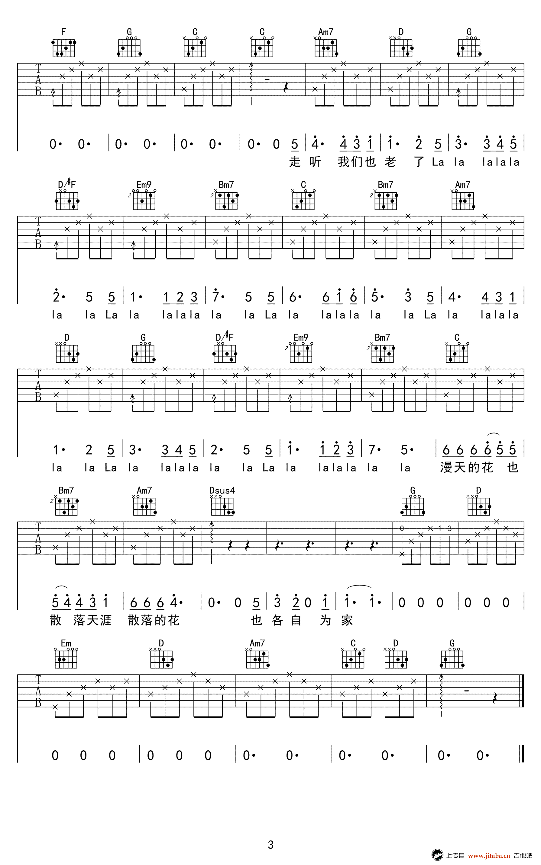 当前位置:琴谱网>吉他弹唱>花落知多少