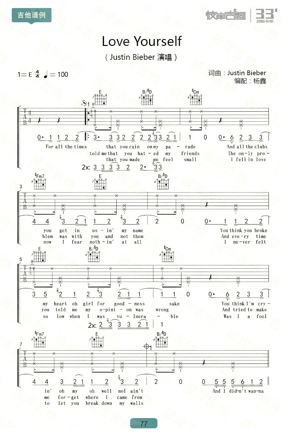 当前位置:琴谱网>吉他弹唱>Love Yourself