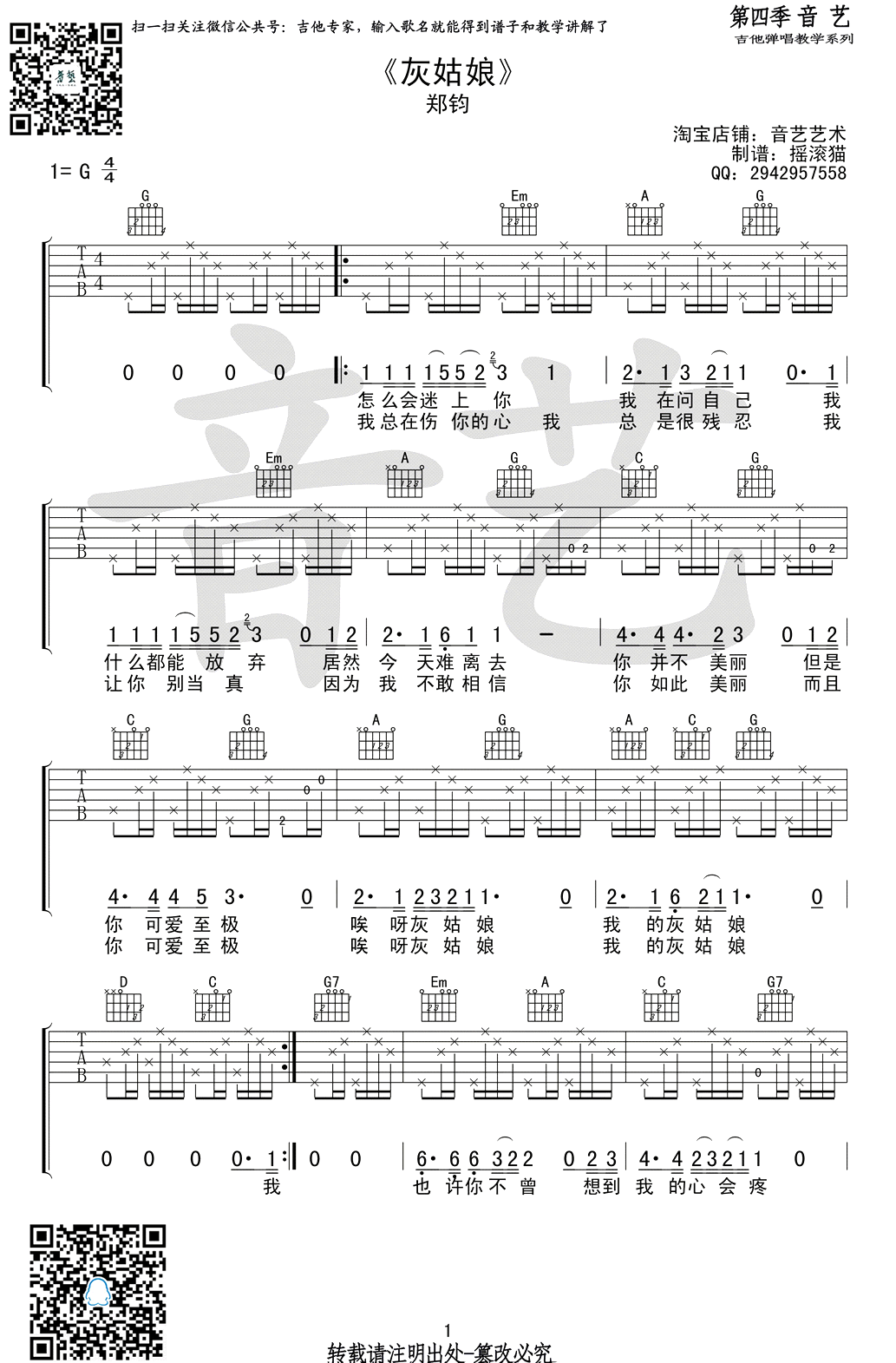当前位置:琴谱网>吉他弹唱>灰姑娘