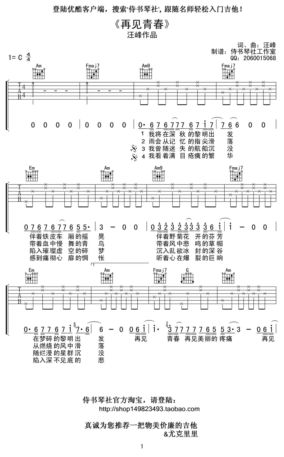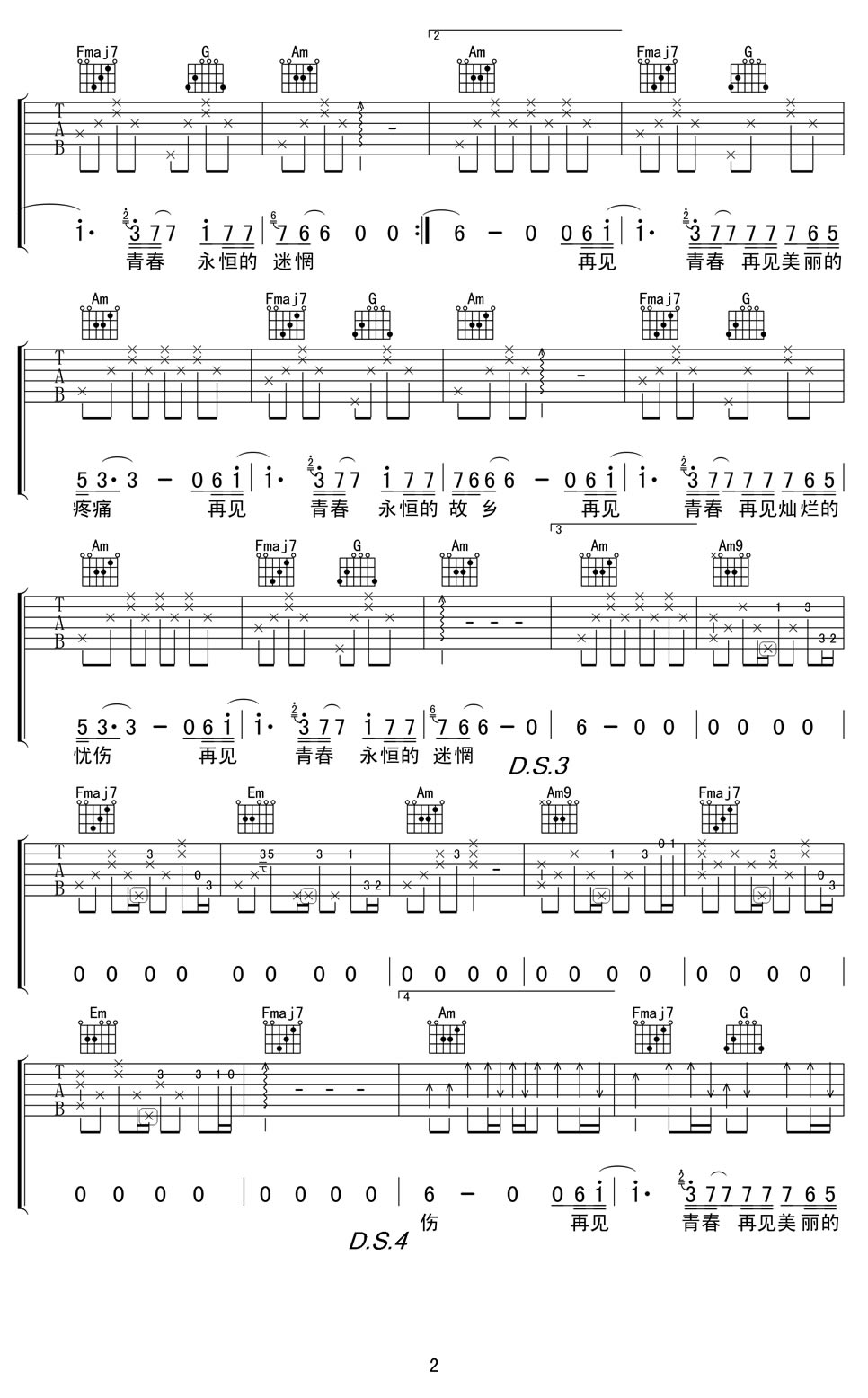 当前位置:琴谱网>吉他弹唱>再见青春