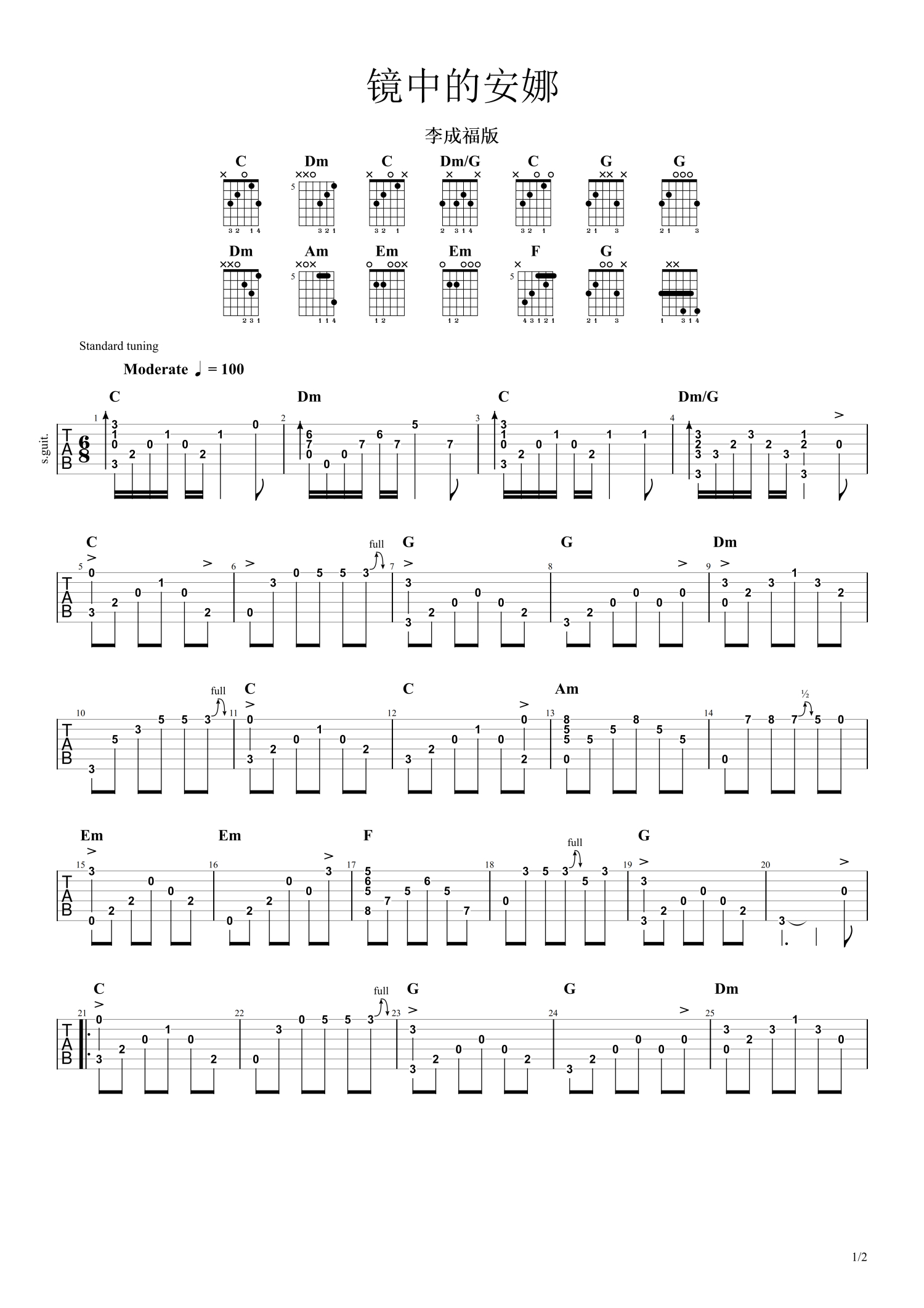 • 镜中的安娜吉他谱 - 吉他独奏谱 - 李成福版本第1张