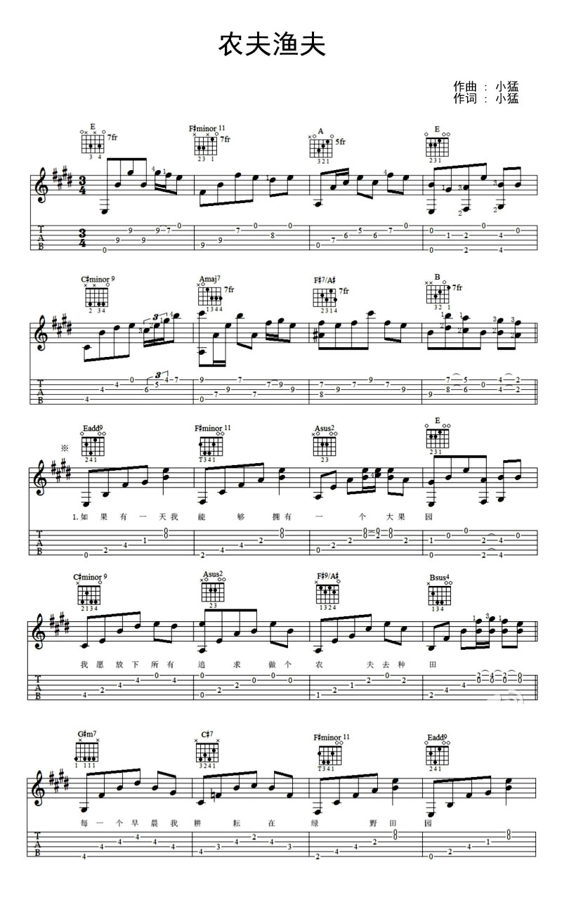 农夫渔夫吉他谱 - 小猛 - 吉他弹唱谱 - 原版