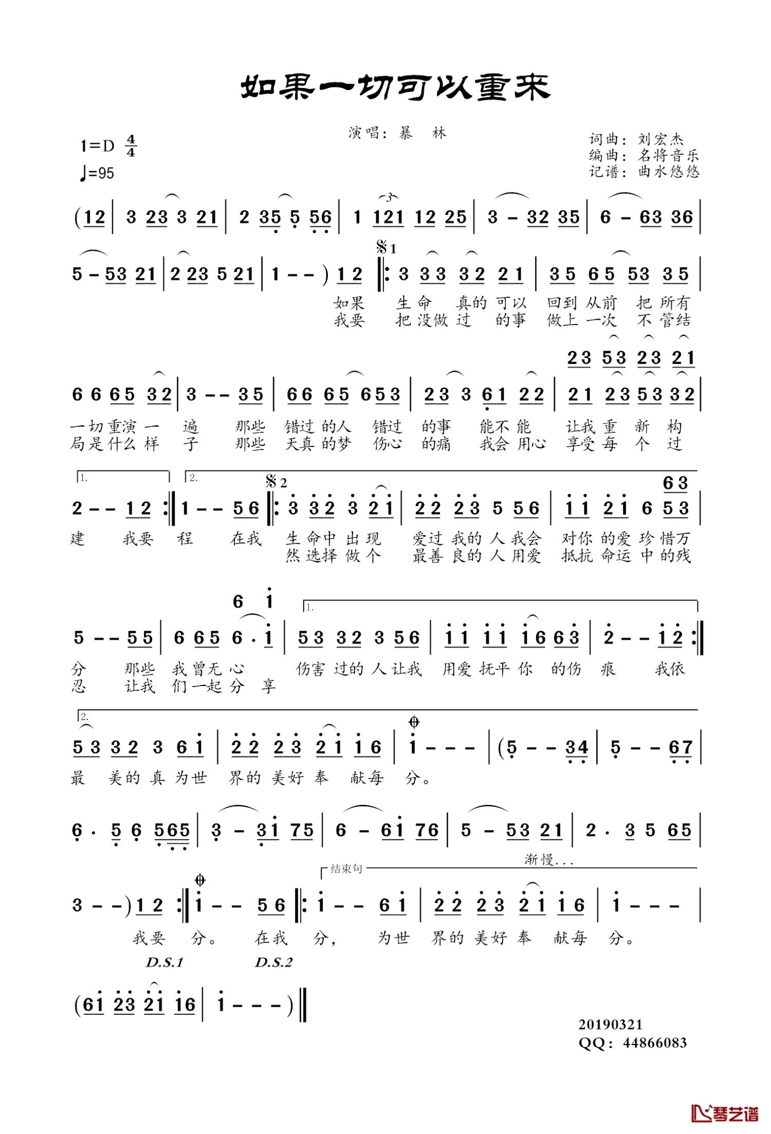 如果一切可以重来简谱 - 暴林