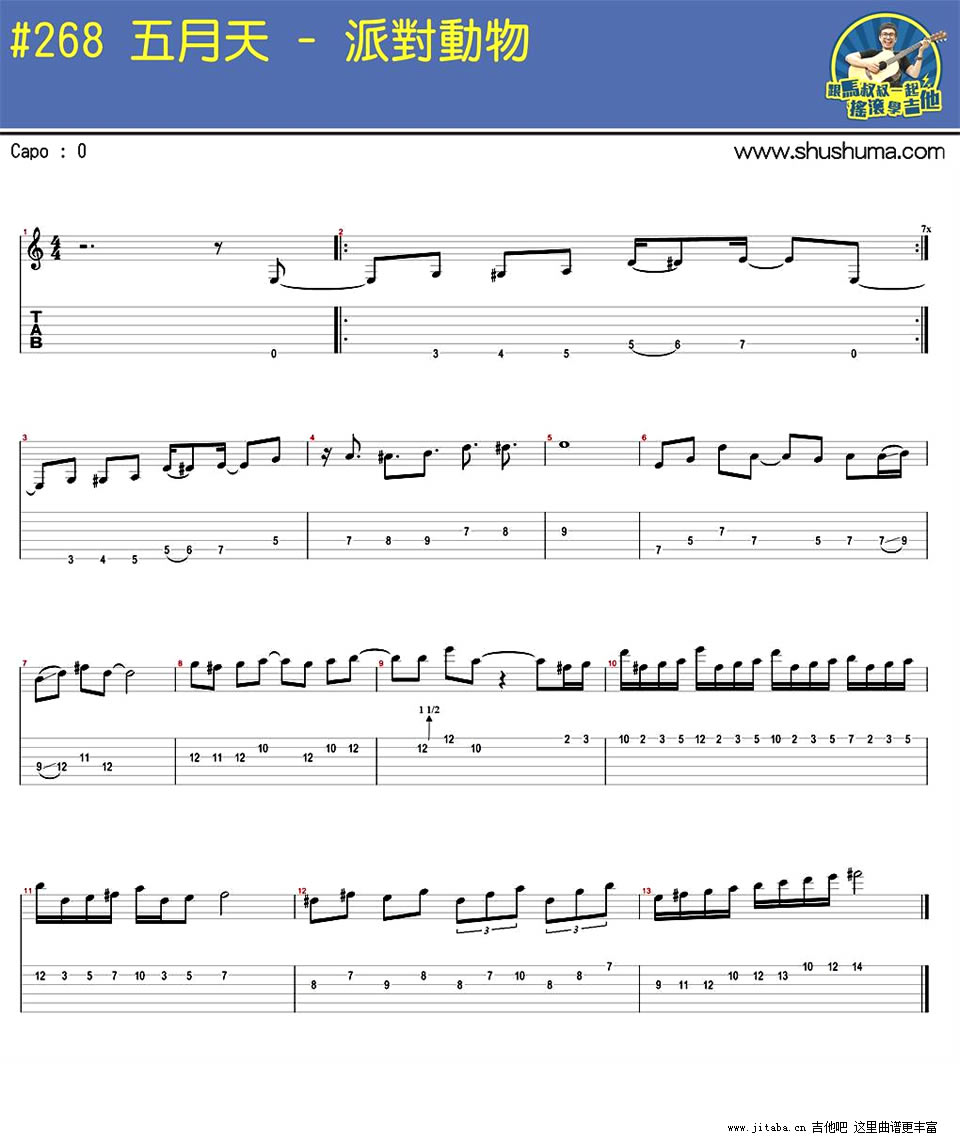 曲谱介绍: 五月天派对动物吉他谱,一首动感的歌曲,将人生比作一场Party,勇敢面对一切挑战。曲谱为马叔叔吉他教学编配分享,派对动物间奏电吉他演奏示范。