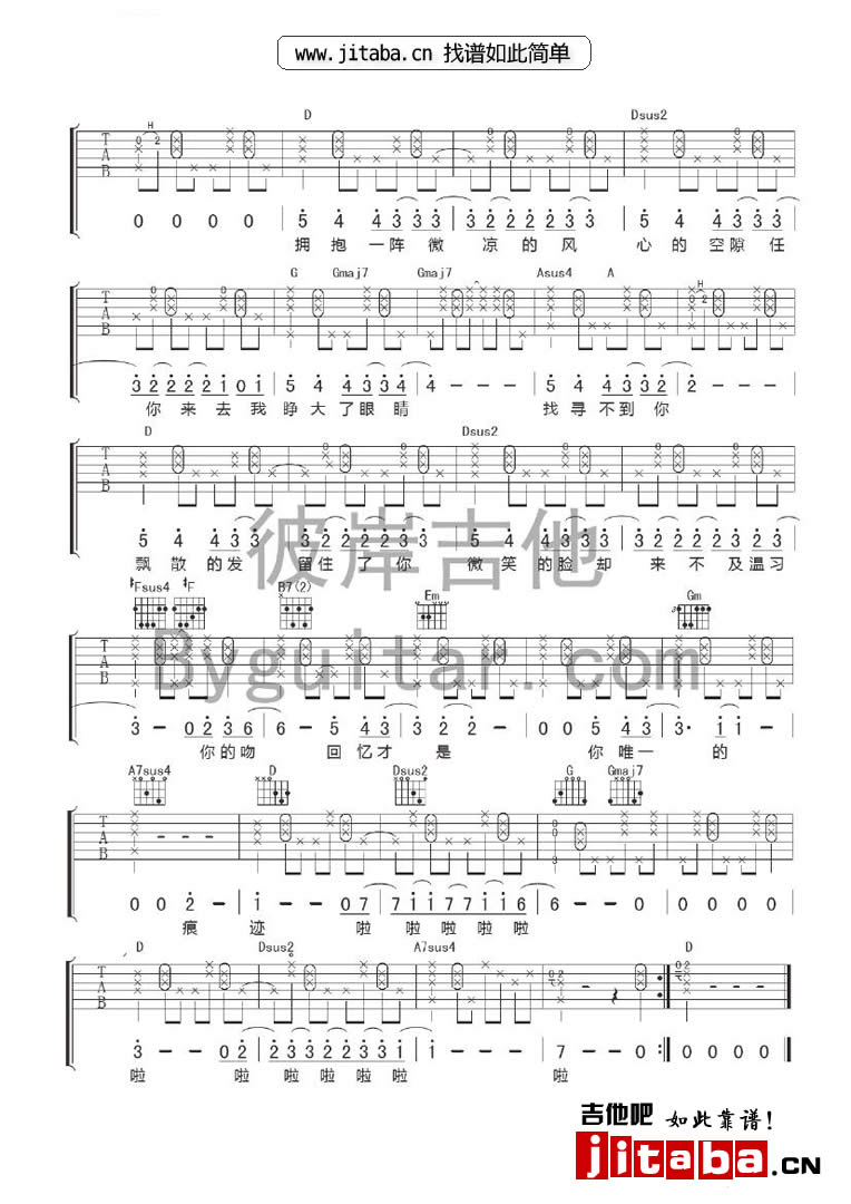 陈绮贞 微凉的你吉他谱 - 陈绮贞 - 吉他弹唱谱