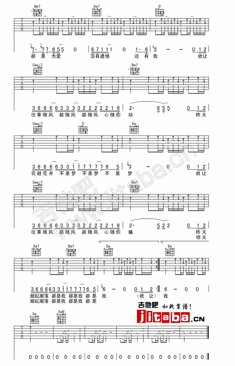 往事随风吉他谱 - 吉他弹唱谱