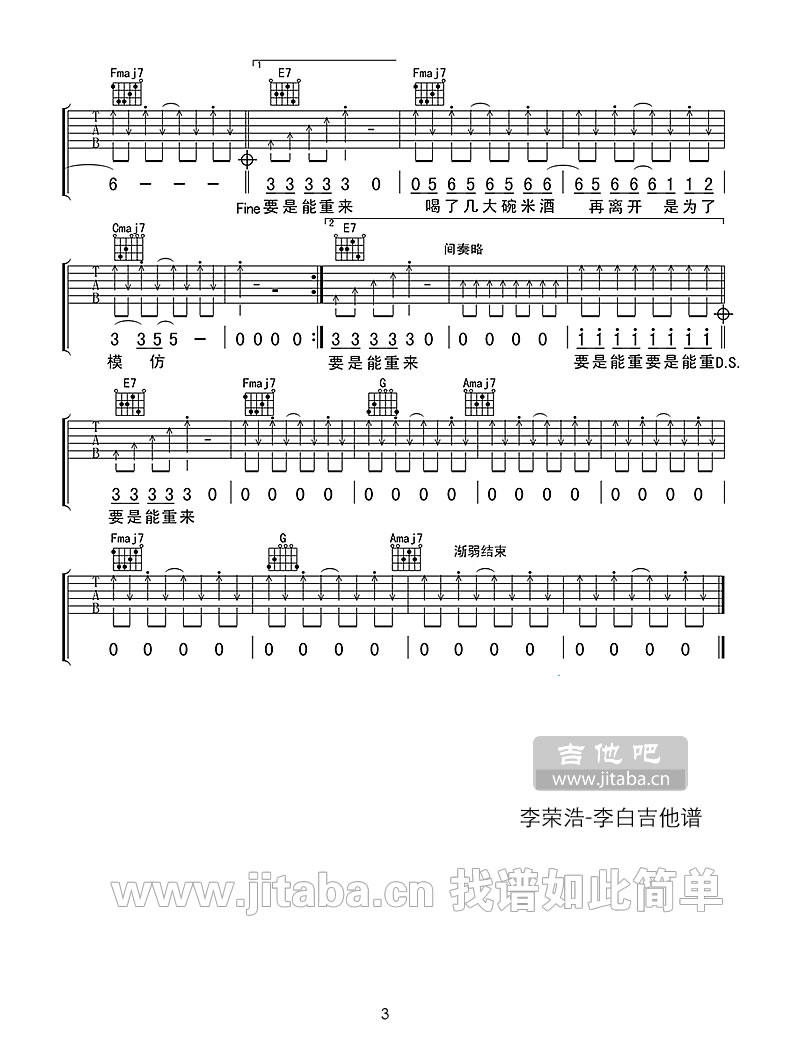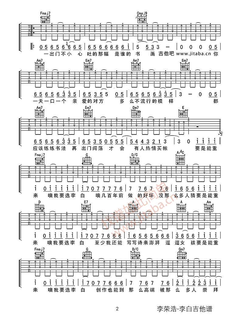 当前位置:琴谱网>吉他弹唱>李白